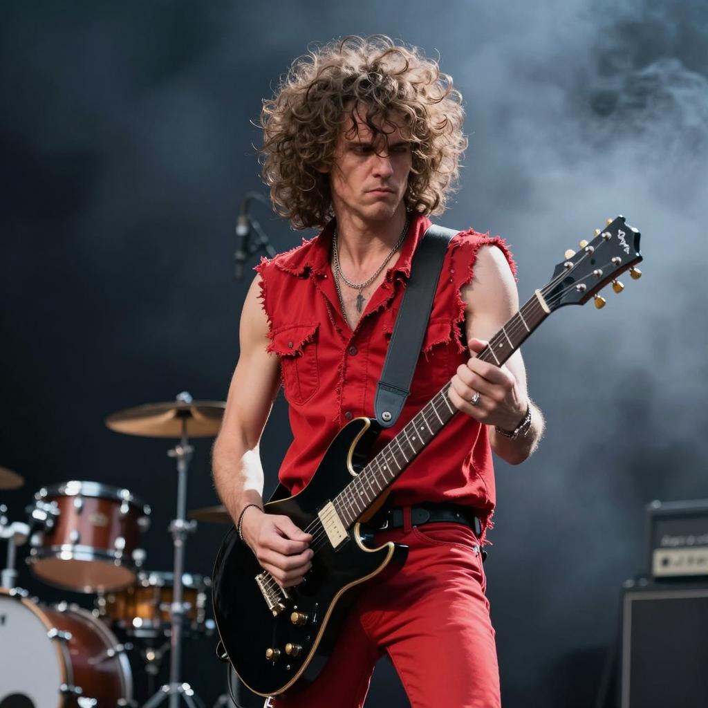 Photograph of a male musician playing a saxophone, wearing a dark t-shirt, with intense focus. Background has two blurred male figures with raised arms, illuminated by yellow stage lights. Musicians in dim, yellow-lit environment.