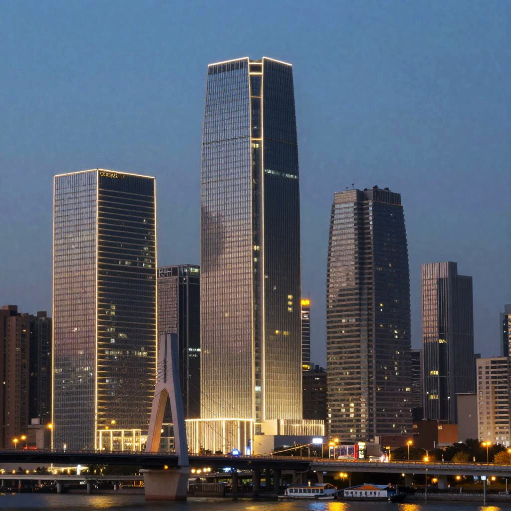 High-resolution digital painting of Control Net Canny edge detection applied to urban architecture, artistic interpretation with glowing outlines tracing every detail of skyscrapers and bridge structures, dusk background with subtle bokeh lighting, tech-inspired illustration