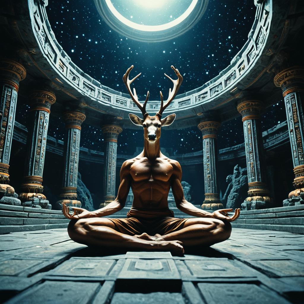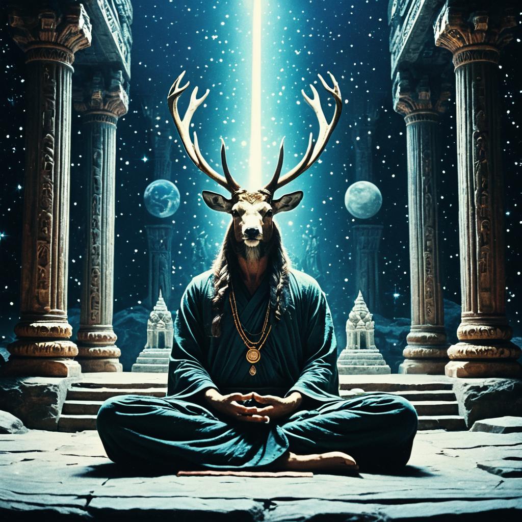 Meditating Stag Buddha Statue in Misty Mountain