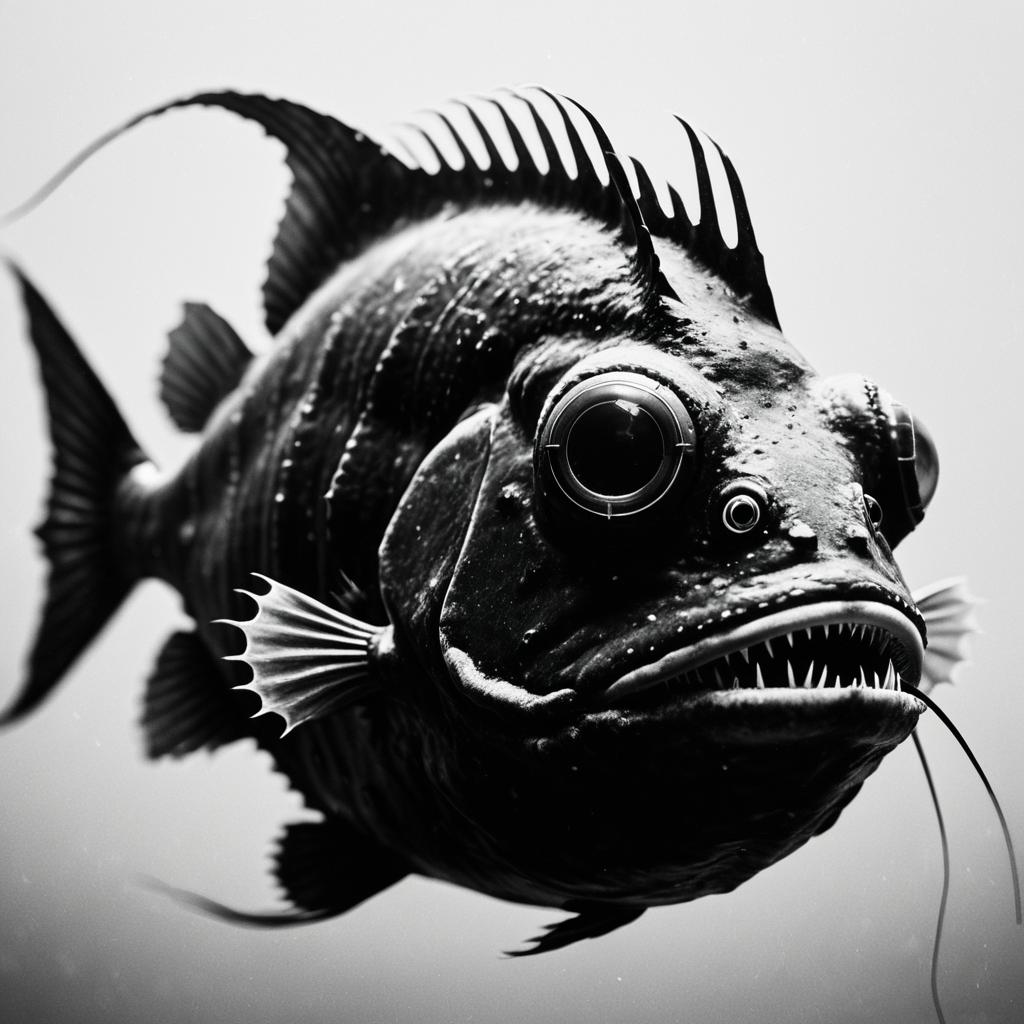 Ultra-Realistic Monochrome Deep-Sea Anglerfish Portrait