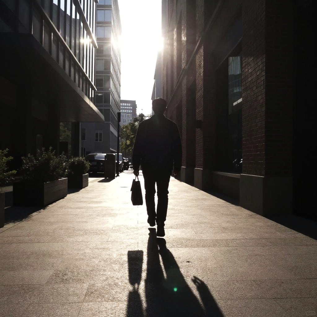 Sunlit Urban Walkway Silhouette with Briefcase