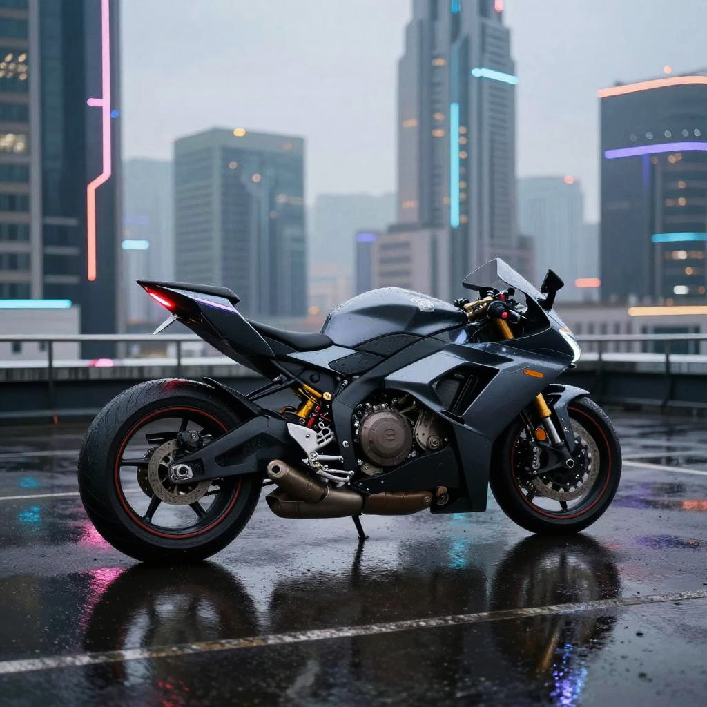 Futuristic Cyberpunk Motorcycle Night Ride