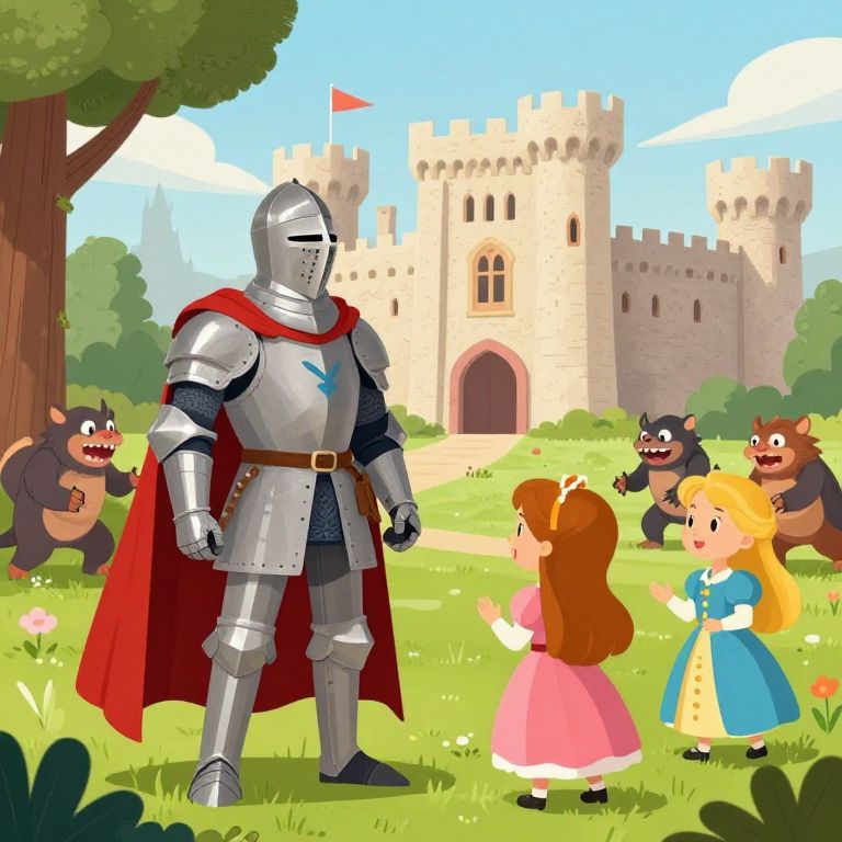 Duality A knight in silver armor kneels and reads poetry to a girl sitting in a gazebo in a park where roses grow. Cartoon style,