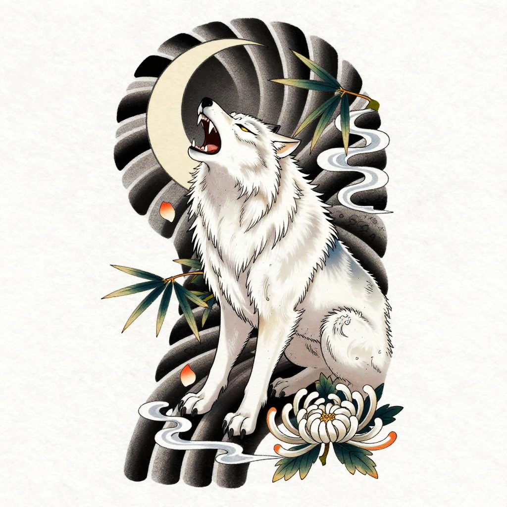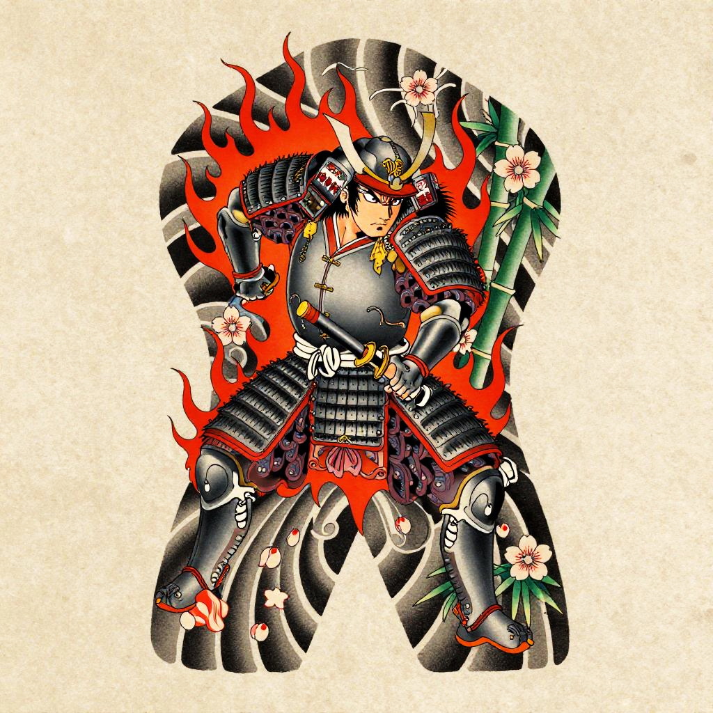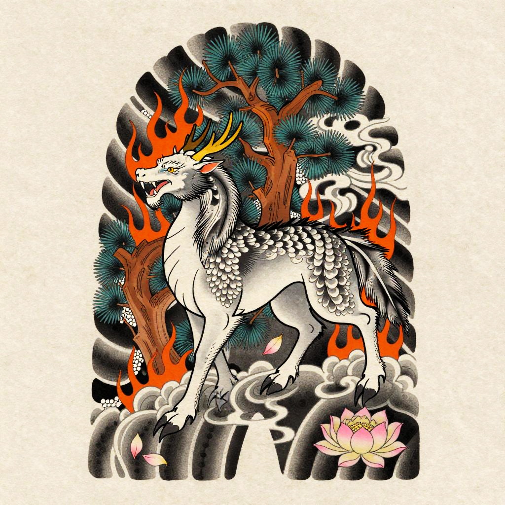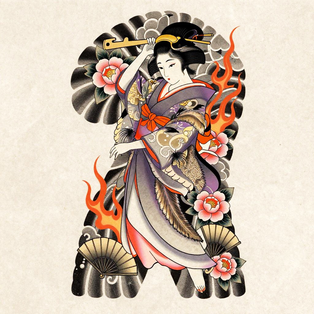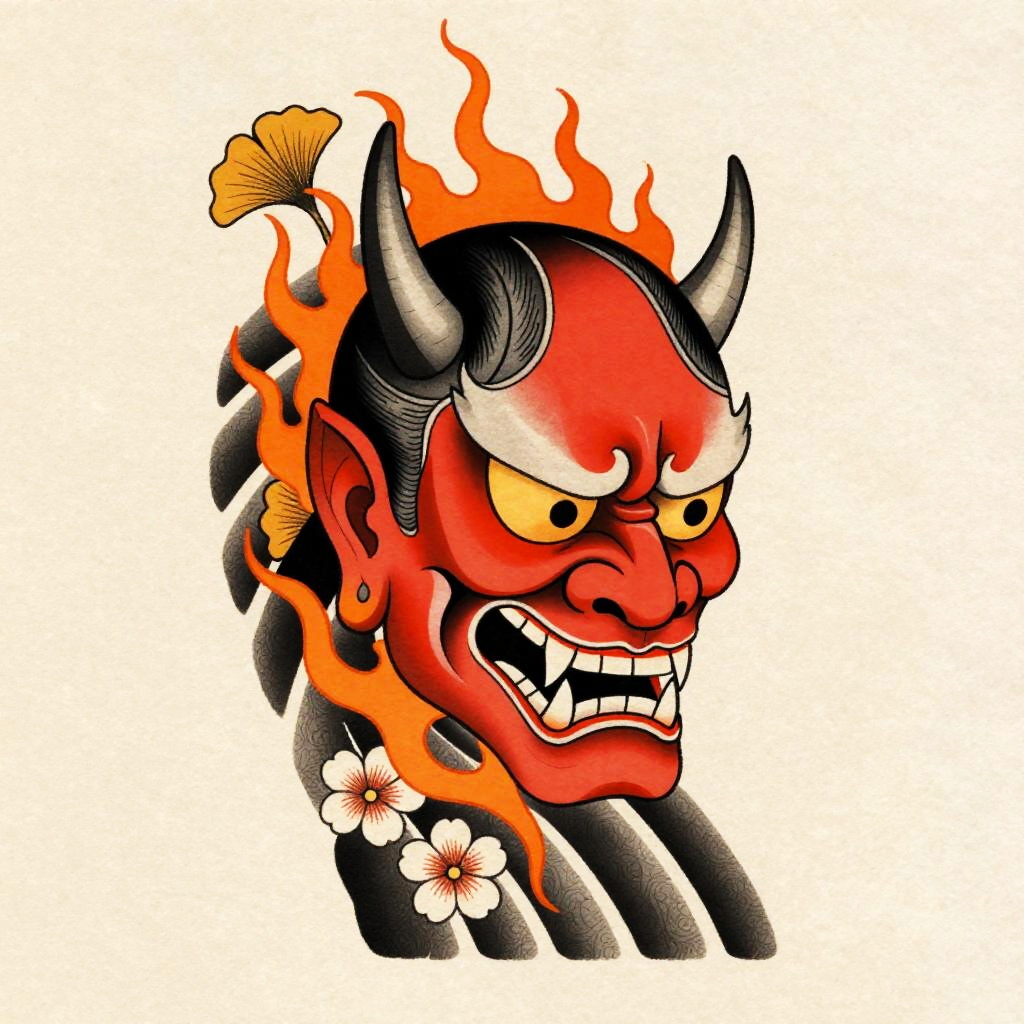 Playful Tanuki Irezumi Tattoo Flash