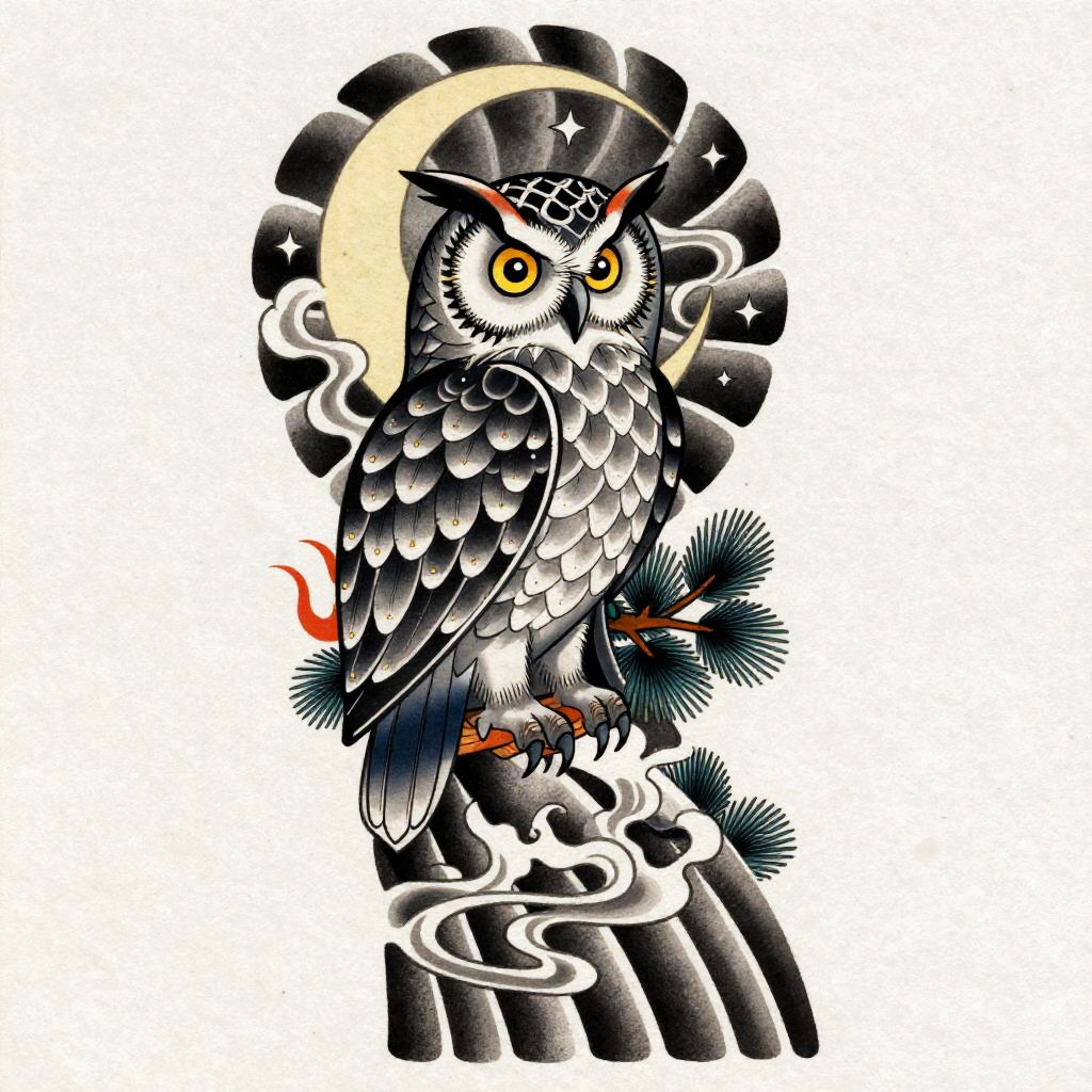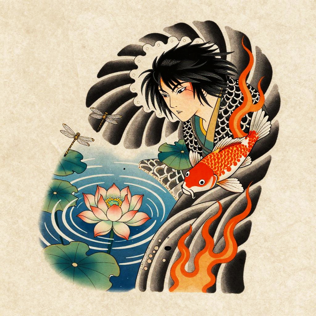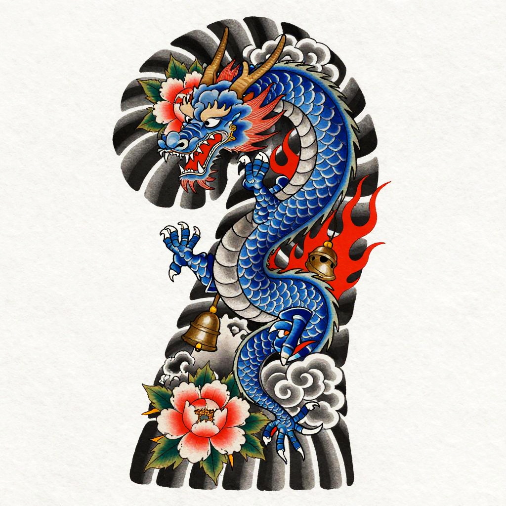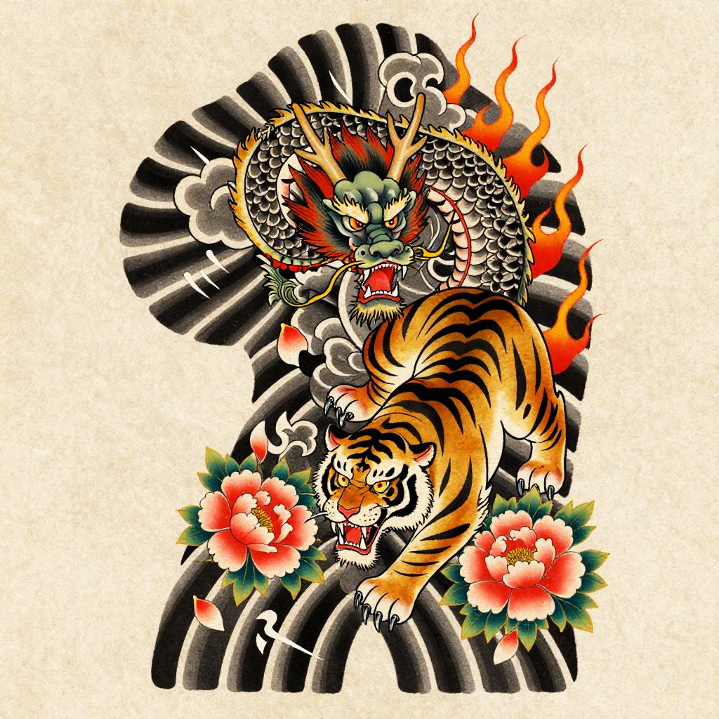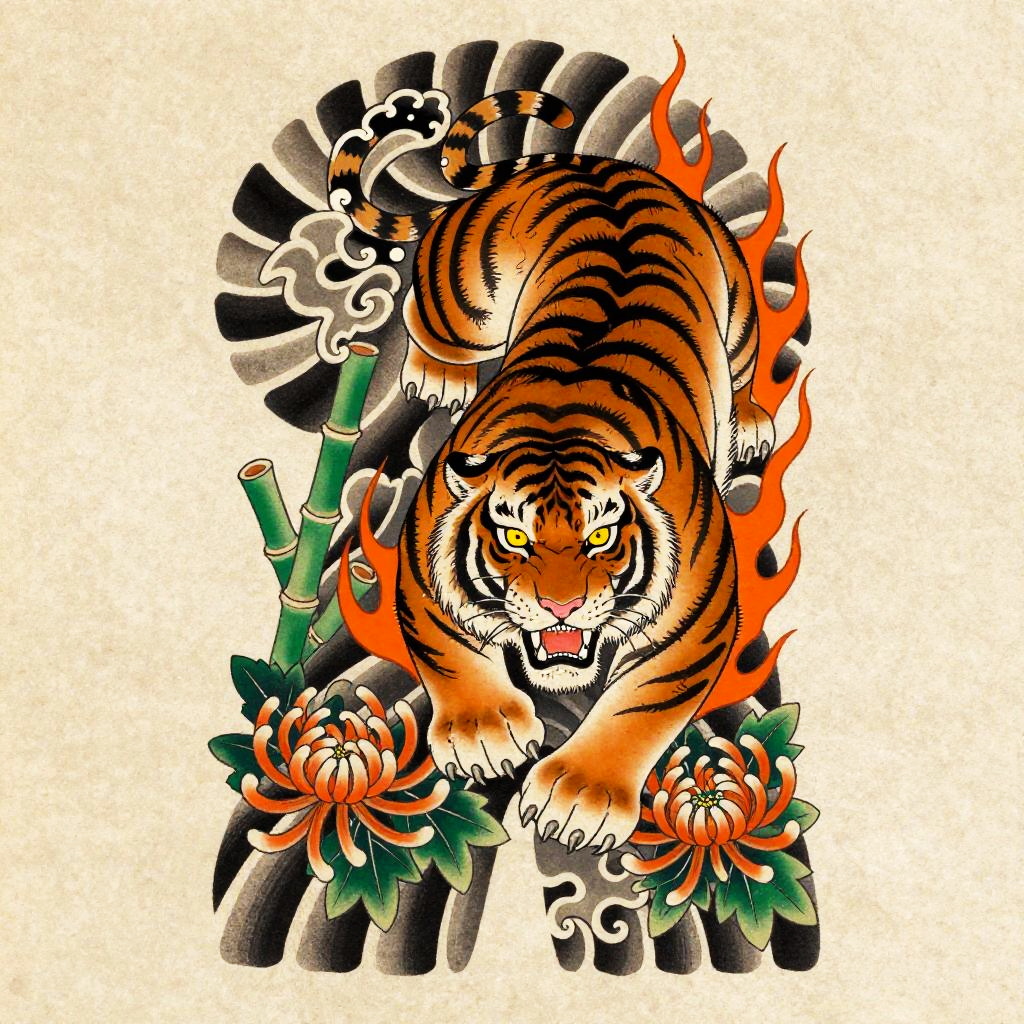 Playful Tanuki Irezumi Tattoo Flash