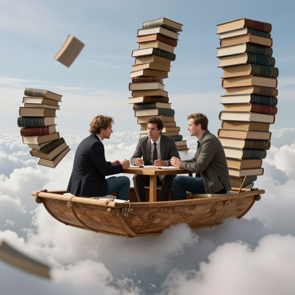 Suspended between celestial spheres, scholars engage in timeless debates, their voices resonating like whispers of wisdom, while the fabric of reality trembles beneath their contemplative discourse, weaving a tapestry of intellectual curiosity and cosmic wonder.