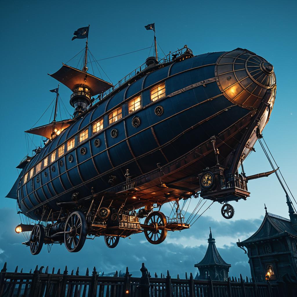 Steampunk Airship Dock at Sunrise
