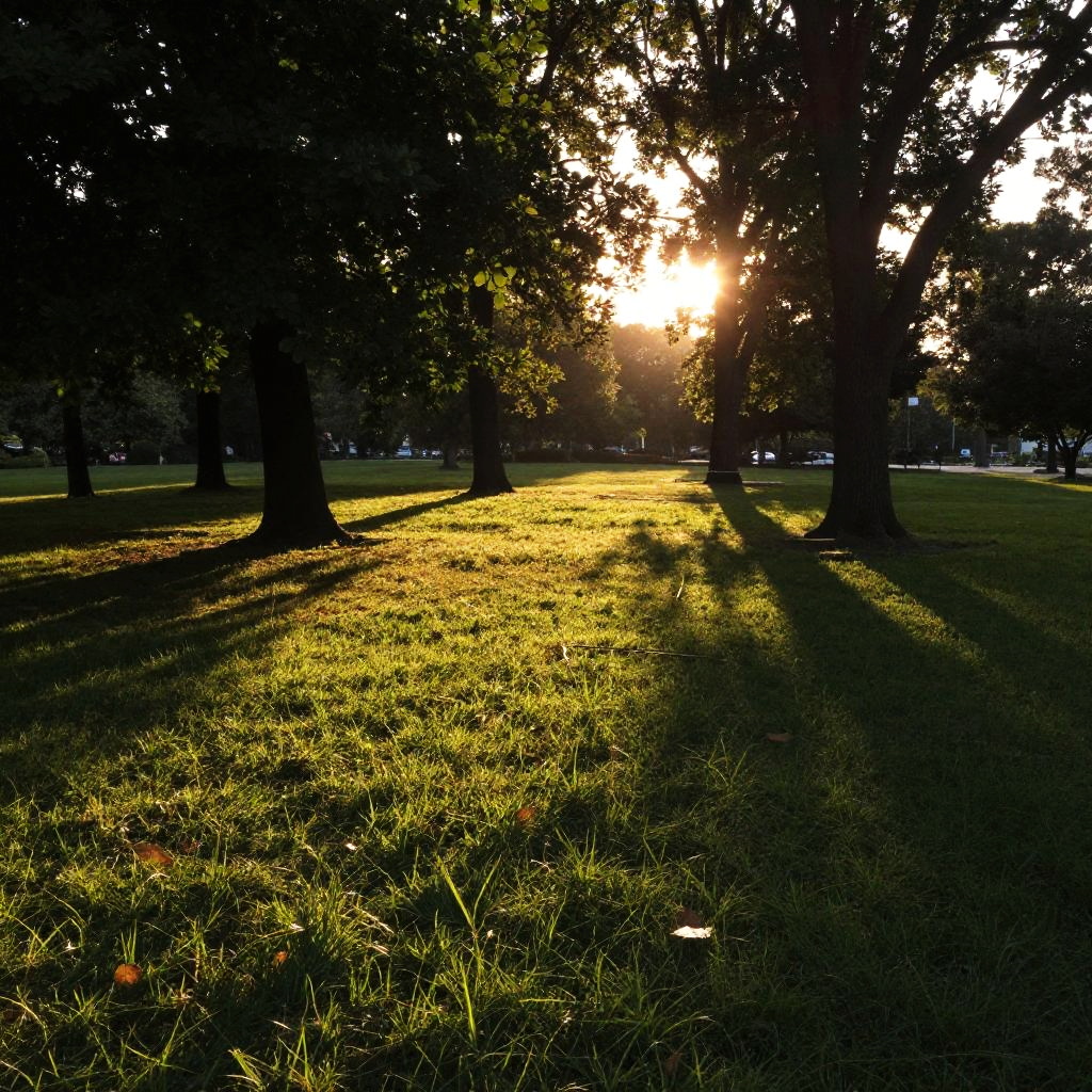 Sunlit Park at Sunrise Glow