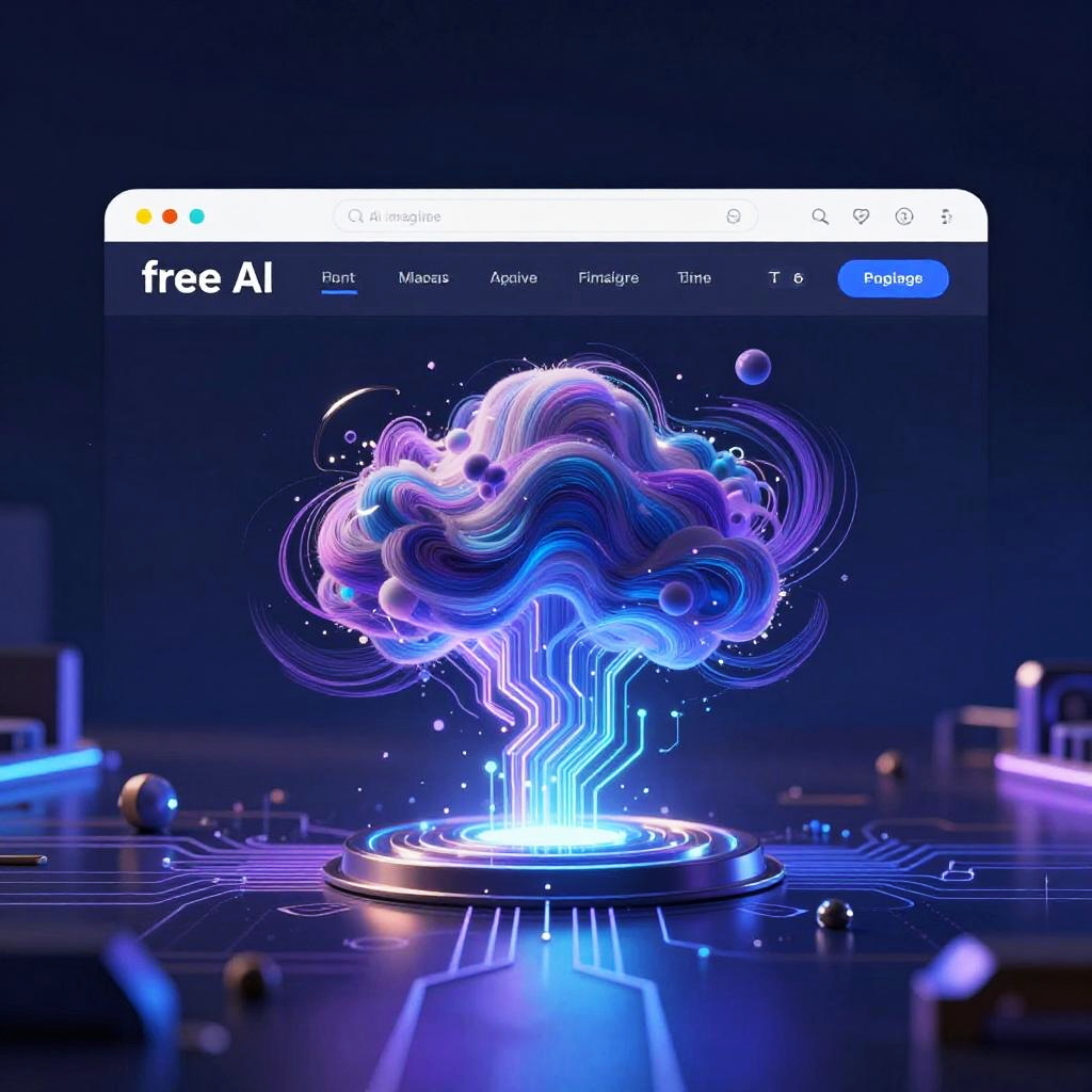 Illustration of 'What is WebUI': A stylish web user interface mockup on a transparent holographic screen, showing various interactive elements like buttons, sliders, and menus with vibrant colors and smooth gradients, surrounded by a creative digital workspace setup.