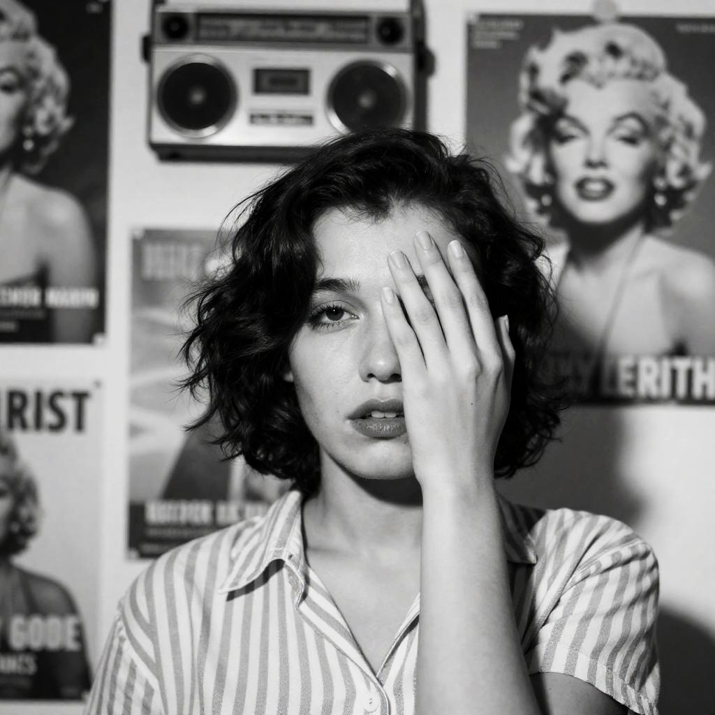 Captivating Black-and-White Shower Portrait
