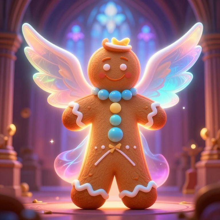 Gingerbread an angel in a church, in the style of colorful fantasy, vray tracing, ethereal creatures, concept art, light-filled, commission for, flickr,