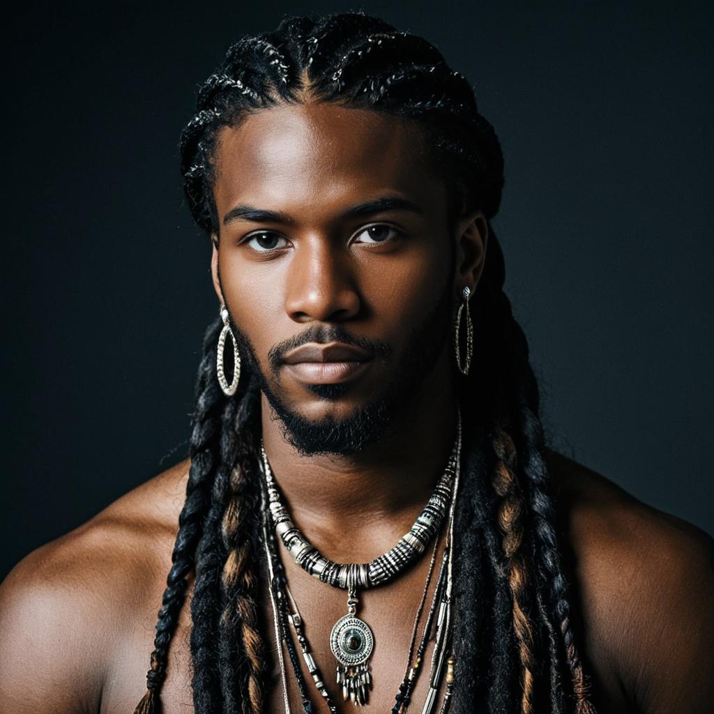 Portrait of Man with Dread Braids and Jewelry