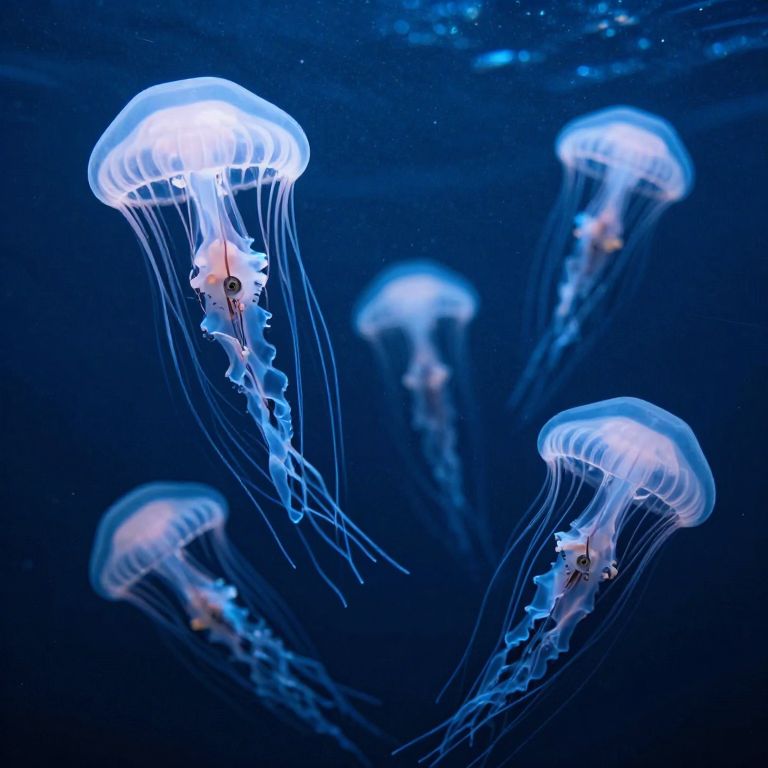 Beneath an ocean of glass, jellyfish with clockwork brains glide in synchronized dances, charting forgotten histories.