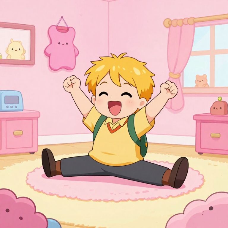 Cheerful Cartoon Split in Pink Room
