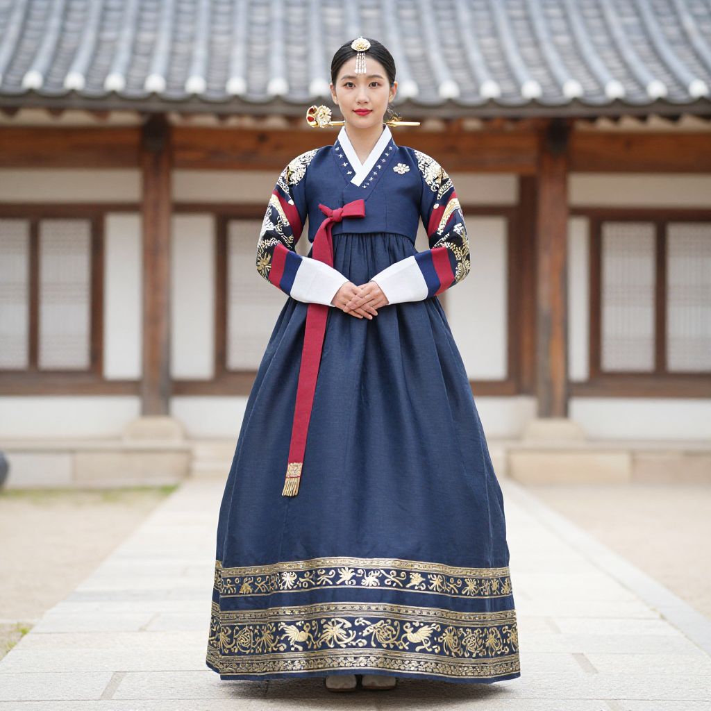 Elegant Navy Blue Hanbok Dress