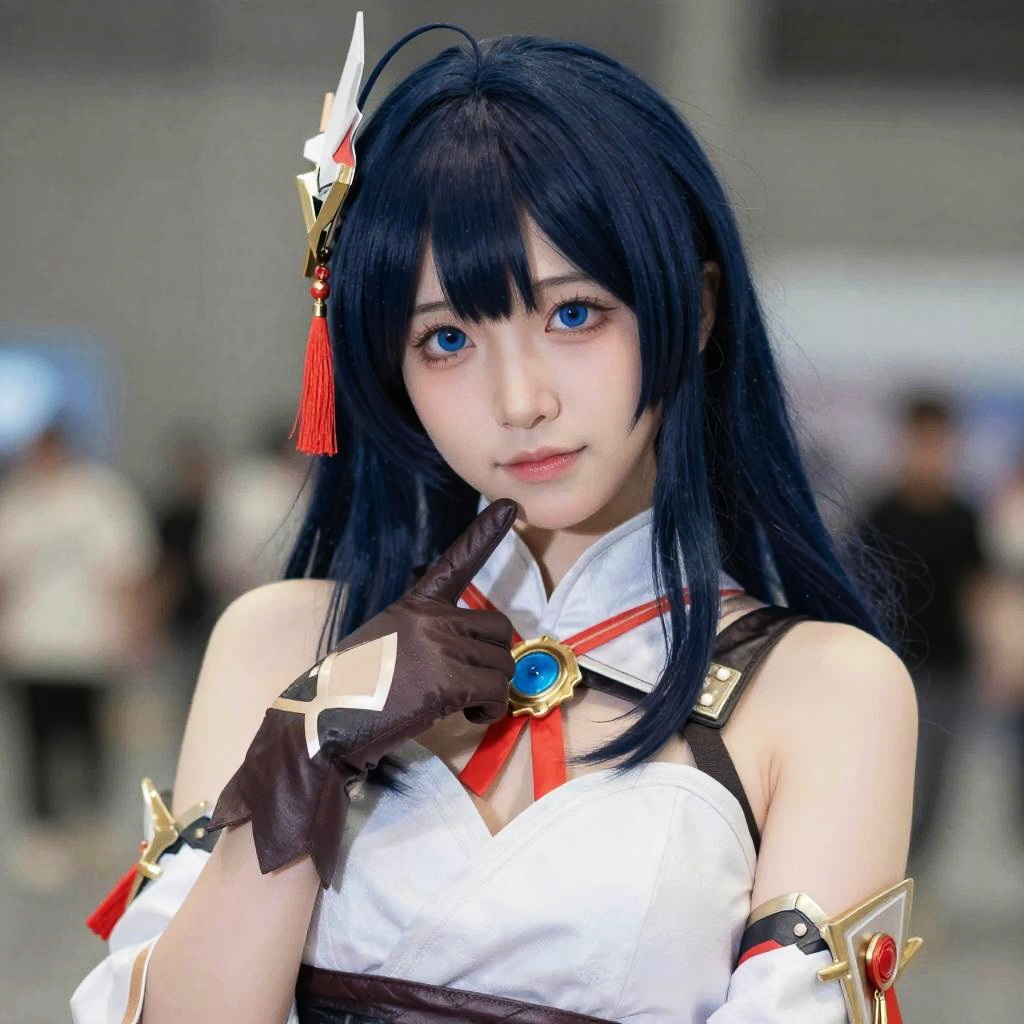 Woman Anime Cosplay, a close up of a woman in a cosplay costume posing for a picture