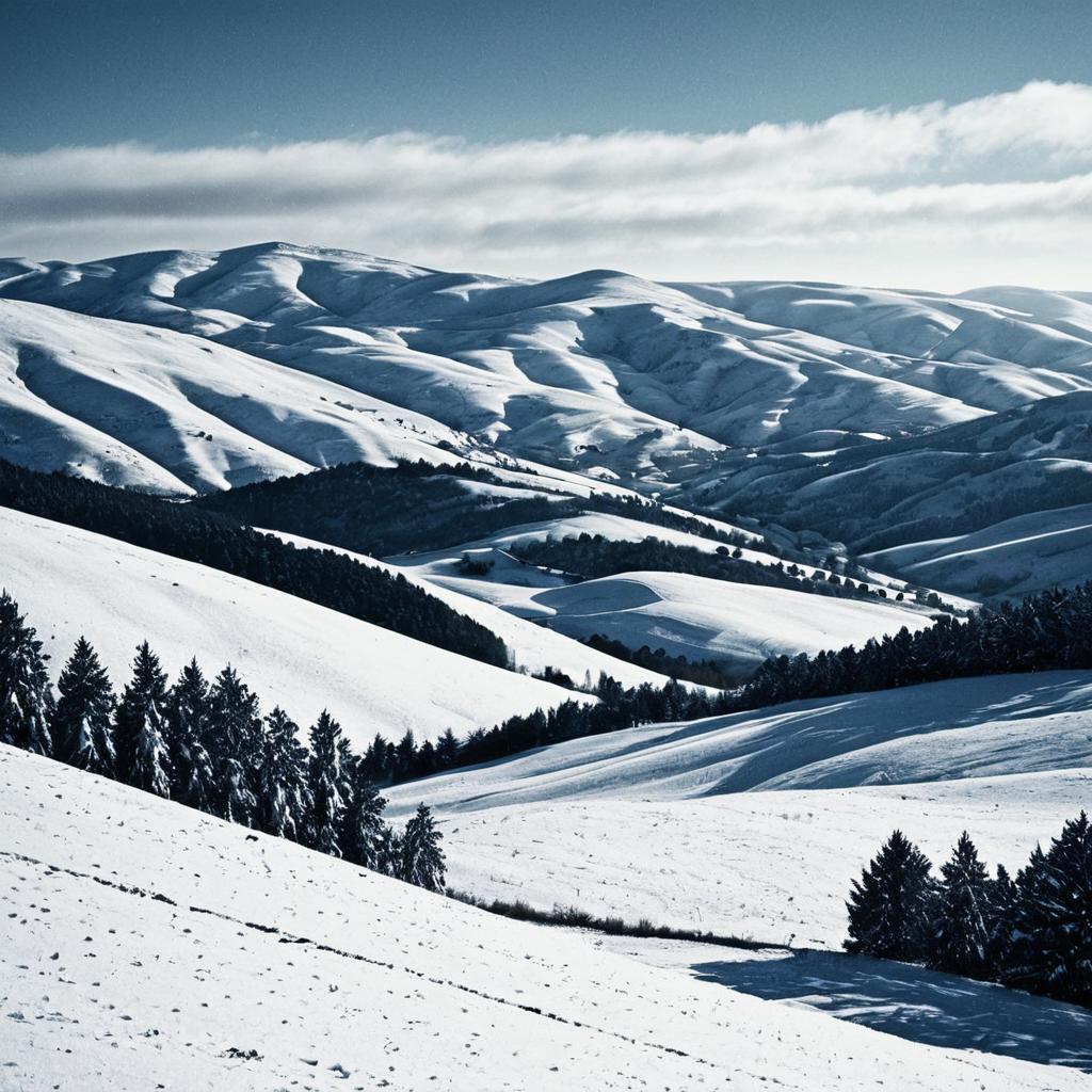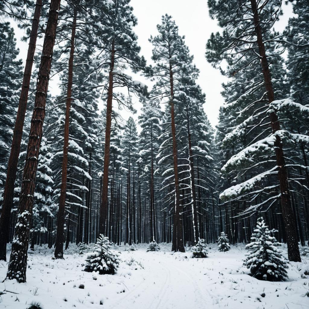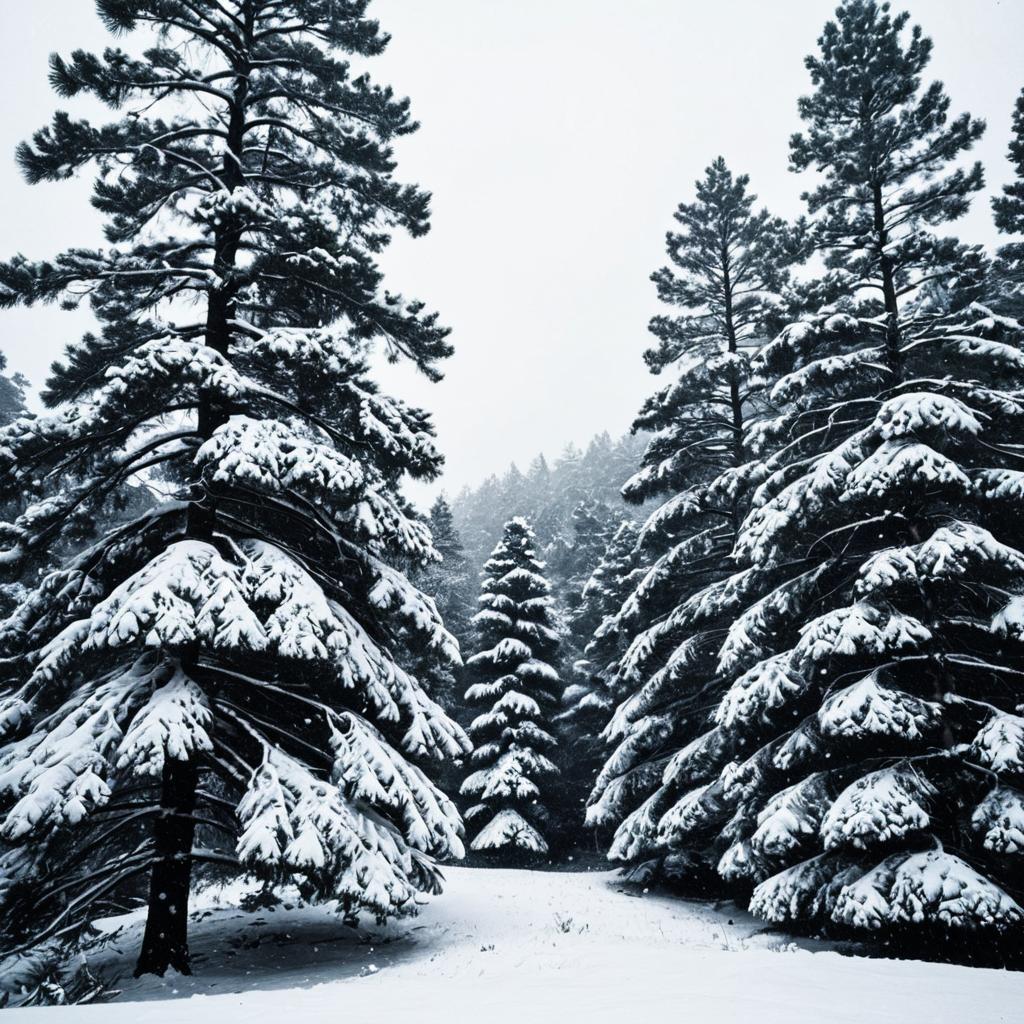 Pine trees blanketed in fresh snow, photorealistic, highly detailed, high resolution, high quality