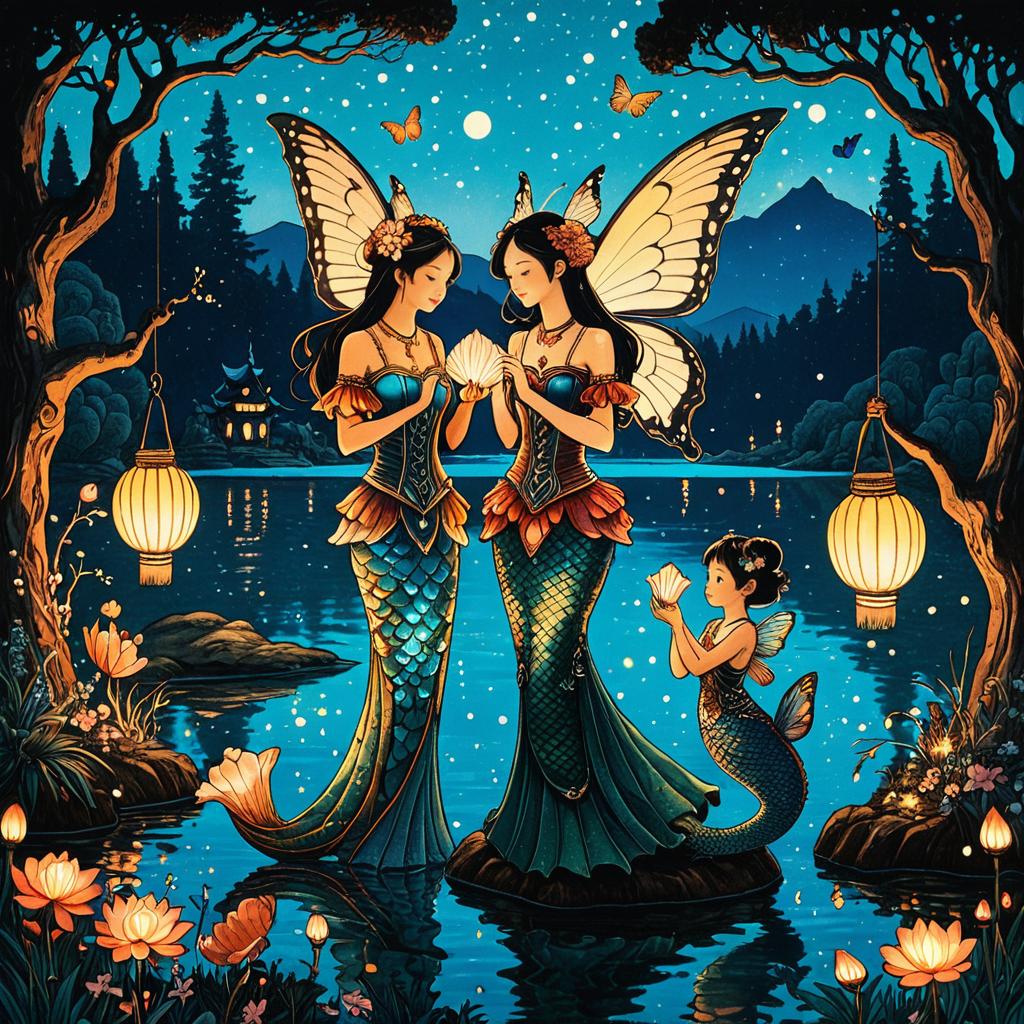 Radiant Angel and Shadow Figure in Starry Galaxy
