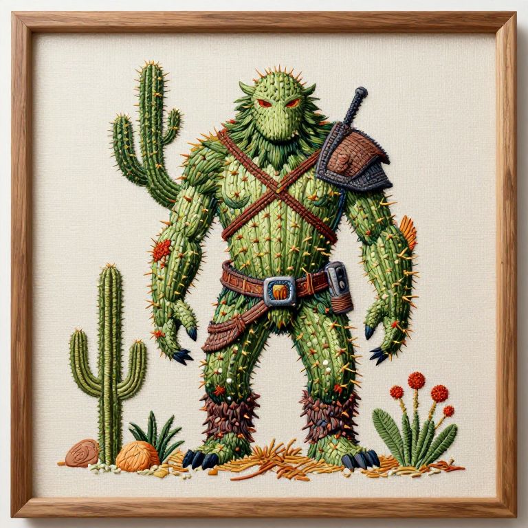 Embroidery Frame large desert cactus humanoid, treant, pricklypear, saguaro, fantasy art, concept art, character art, breath of the wild,