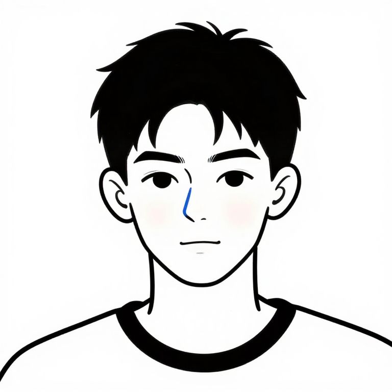 This is a black-and-white digital drawing of a young girl in a cartoon style. She has a bob haircut with straight, dark bangs and wears a headband. Her eyes are large and round with small, curved eyelashes, and she has a small, simple smile on her face. Her cheeks are slightly rounded. She is wearing a plain, rounded-neck shirt. The drawing uses bold, thick black lines with white filling for contrast, creating a clear and simple appearance. The background is entirely white, making the girl the central focus of the image.