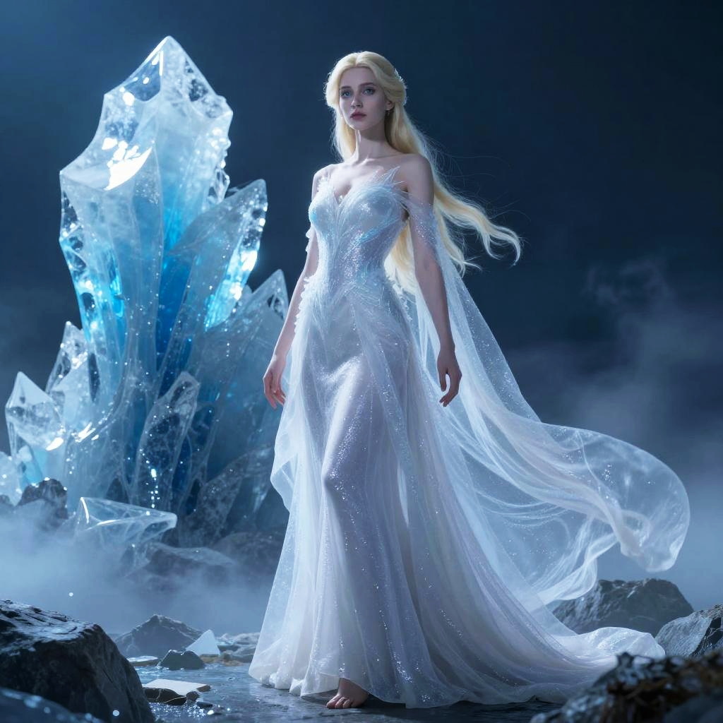 Mystical Harpist Priestess with Crystalline Harp