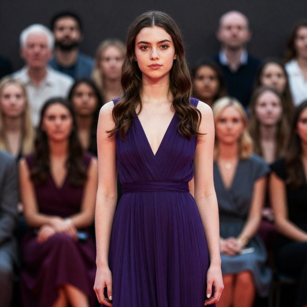 Tangled Family, girl in purple dress standing in front of a crowd of people