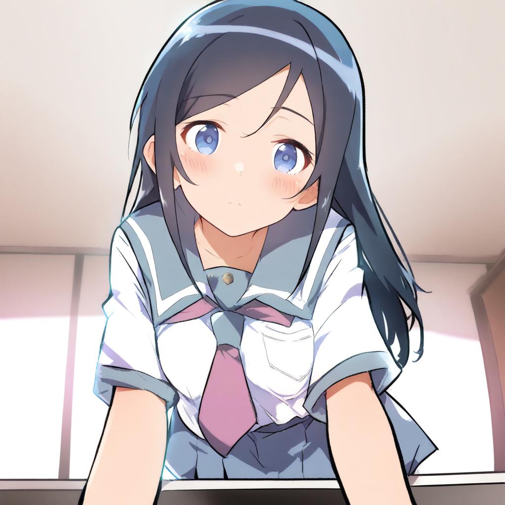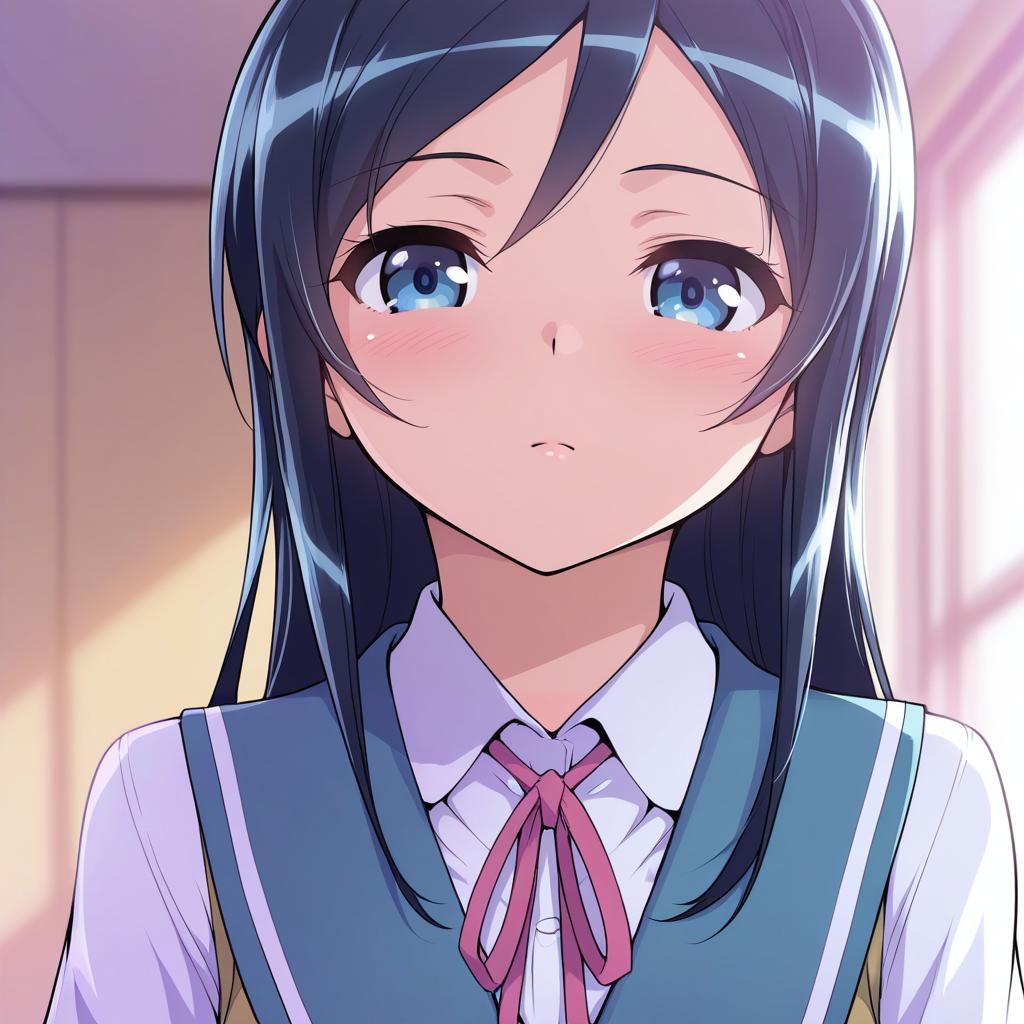 Aragaki ayase, ore no imouto ga konna ni kawaii wake ga nai, 1girl, blue eyes, long hair, black hair, kousaka kirino's school uniform, by artist caburi, animagine