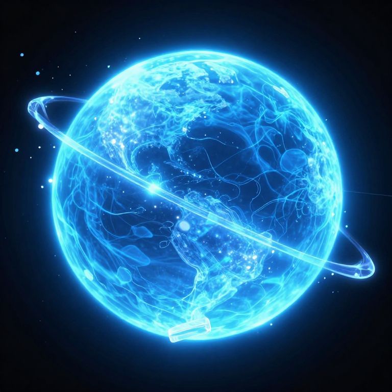 Glowing Fragments Orbit Electric-Blue Planet