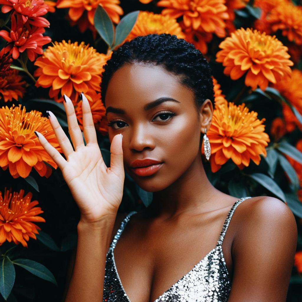 Woman, contemporary street style, black off-the-shoulder crop top with puff sleeves, houndstooth patterned wrap mini skirt with an asymmetrical hem, yellow slide sandals, white backdrop. --sref 1441