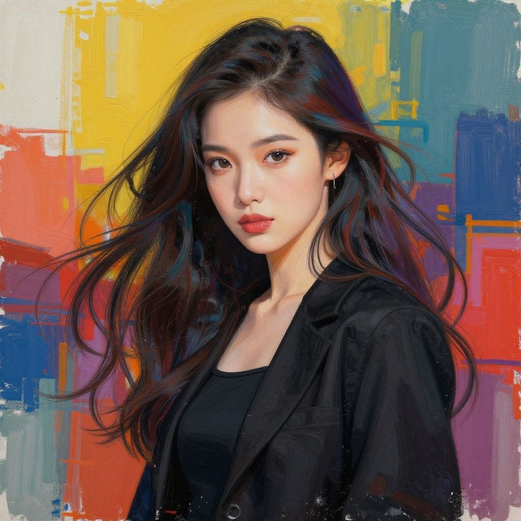 Hesmile artistic interpretation, a surreal portrait featuring a person with an exaggerated yet comforting smile, abstract colorful brush strokes blending with facial features, dreamlike mood, imaginative and expressive style