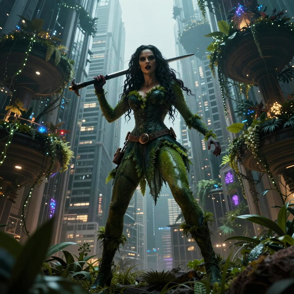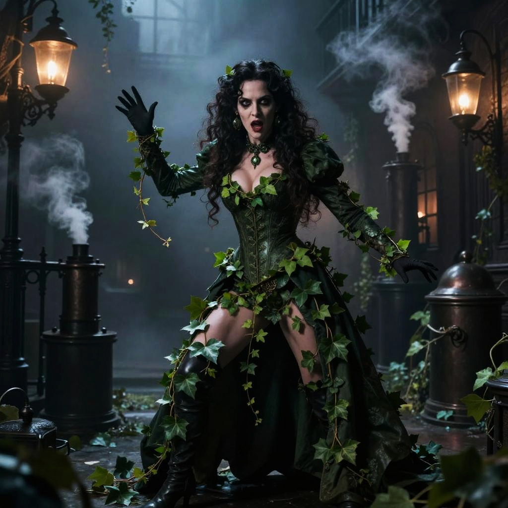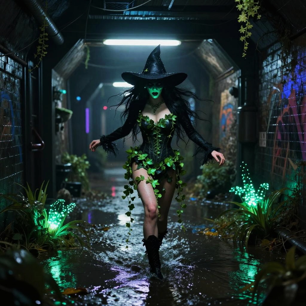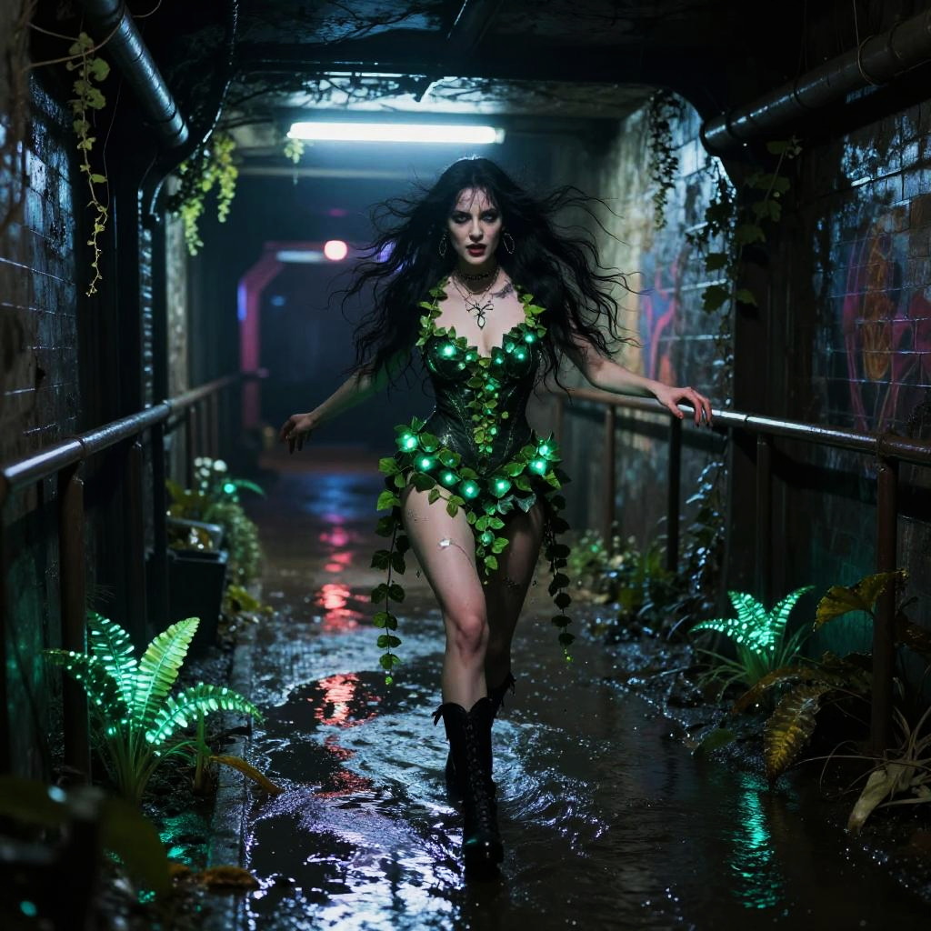 A reimagined Harley Quinn from the Batman universe, set in a vibrant street art canvas downtown. Directed by an experimental storyteller, the scene captures intense action with dramatic lighting, creating a cinematic atmosphere filled with deep shadows.