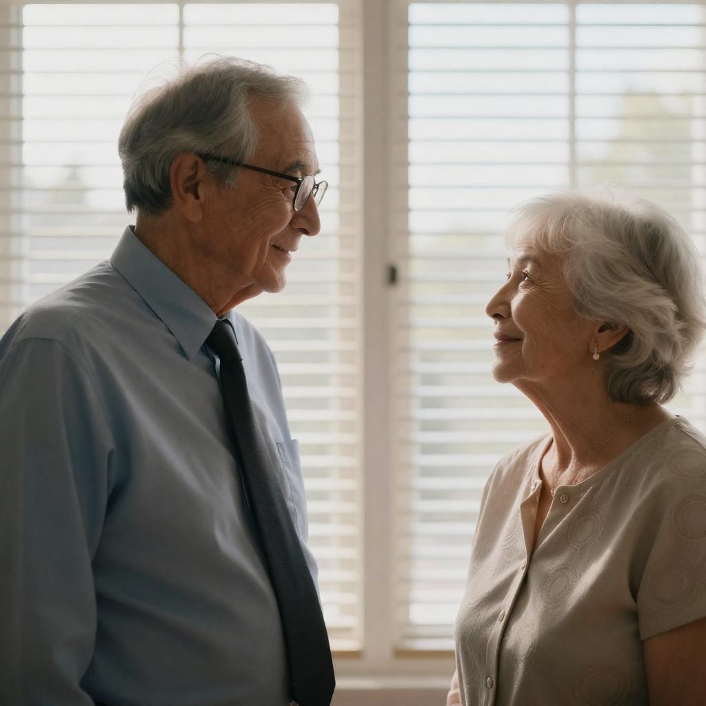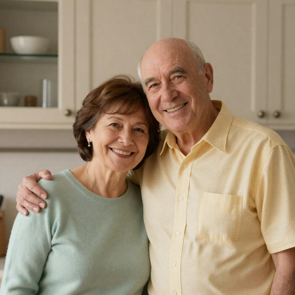 Smiling Older Couple on Red Staircase