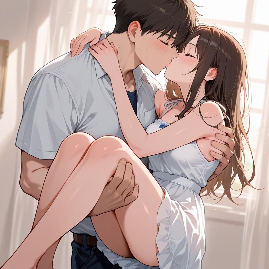 1girl, 1boy, princess carry, kiss, masterpiece, best quality, highly detailed