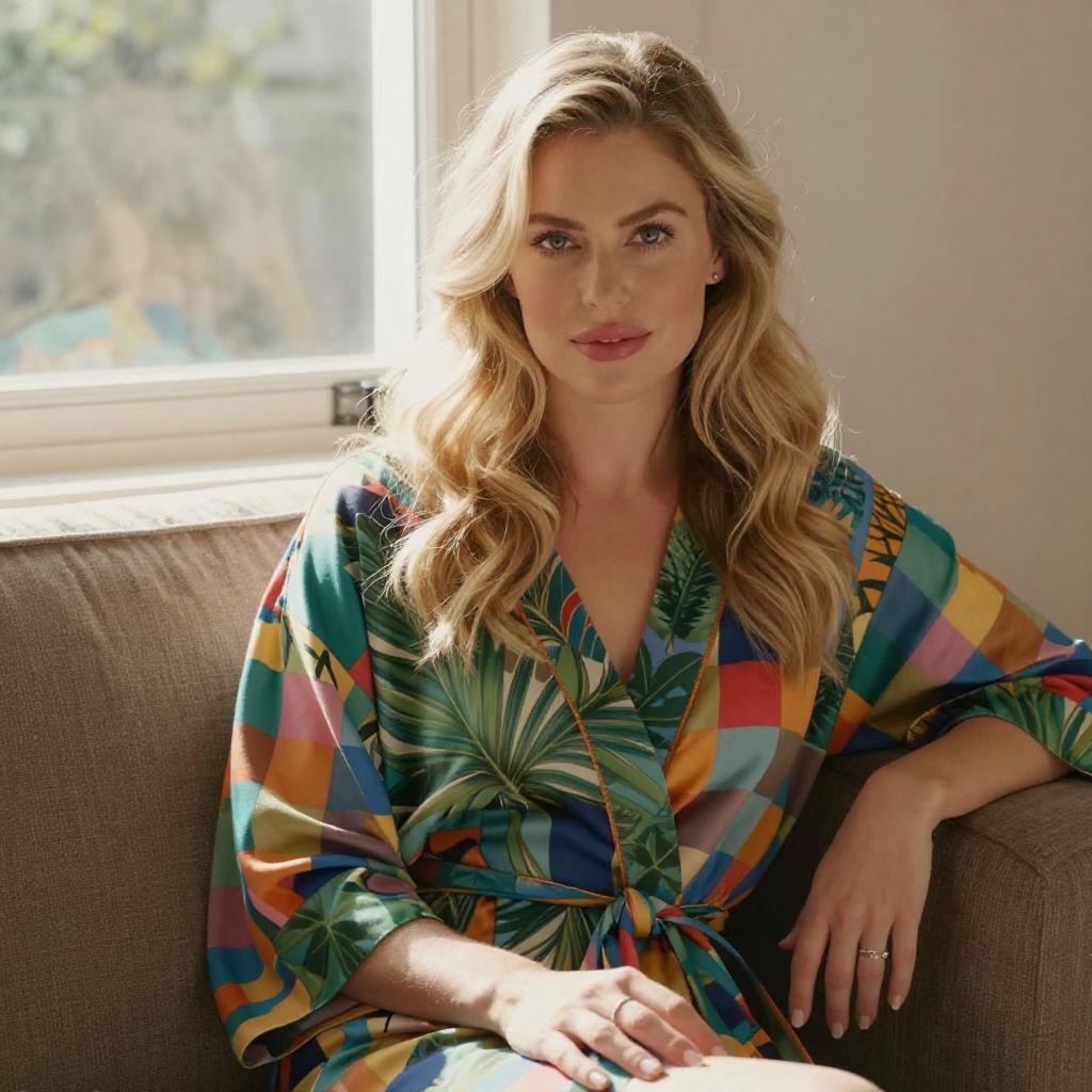 Blonde Woman in Blue Outfit Portrait