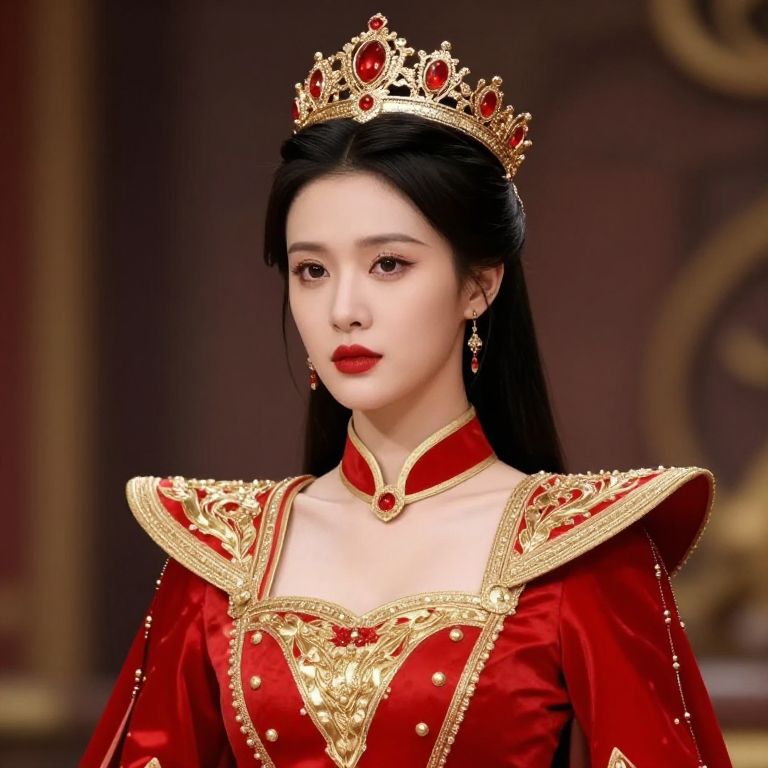 Regal Woman in Red and Gold