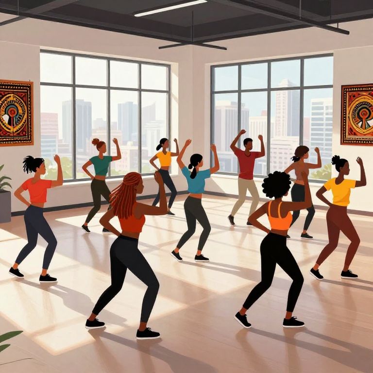 Pose.myart illustration of multiple figures in expressive dance poses, blending realism and abstraction, vivid contrasting colors, soft shadows emphasizing movement and grace, surreal background with hints of urban and natural elements, digital painting.