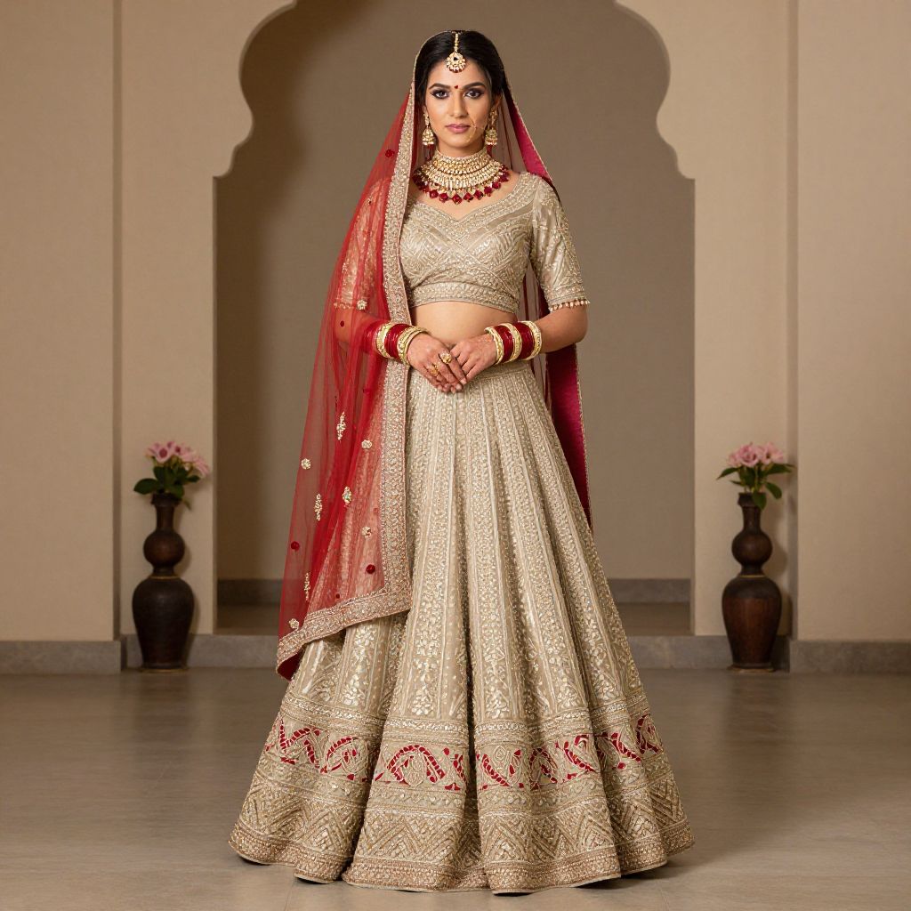 "Top India Bridal Wear, a woman in a bridal dress poses for a picture"