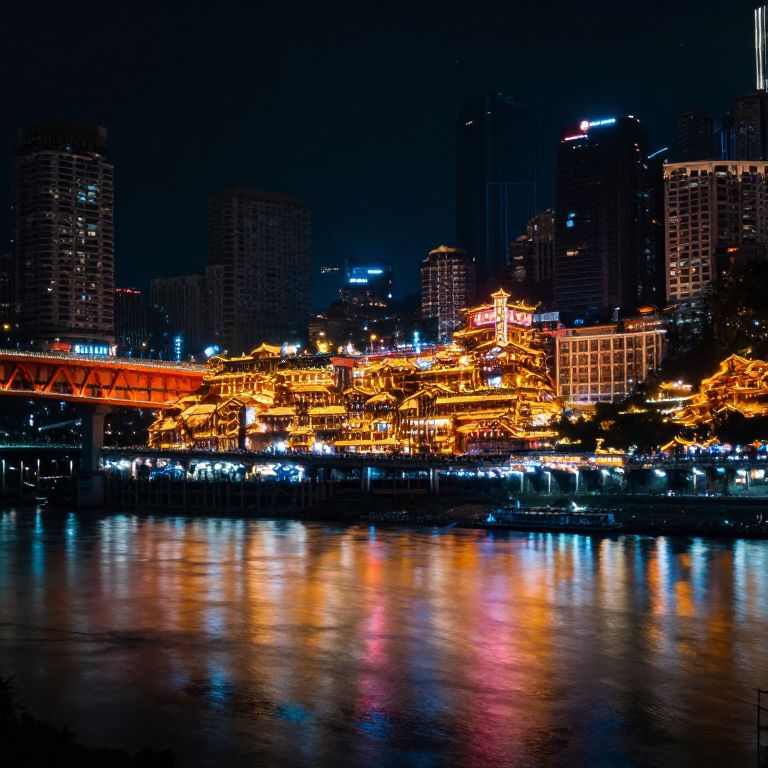 Under the embrace of a starless night, the river mirrors the city's vibrant pulse, weaving a tapestry of serenity and urban vitality where the whispers of history meet the promise of tomorrow.