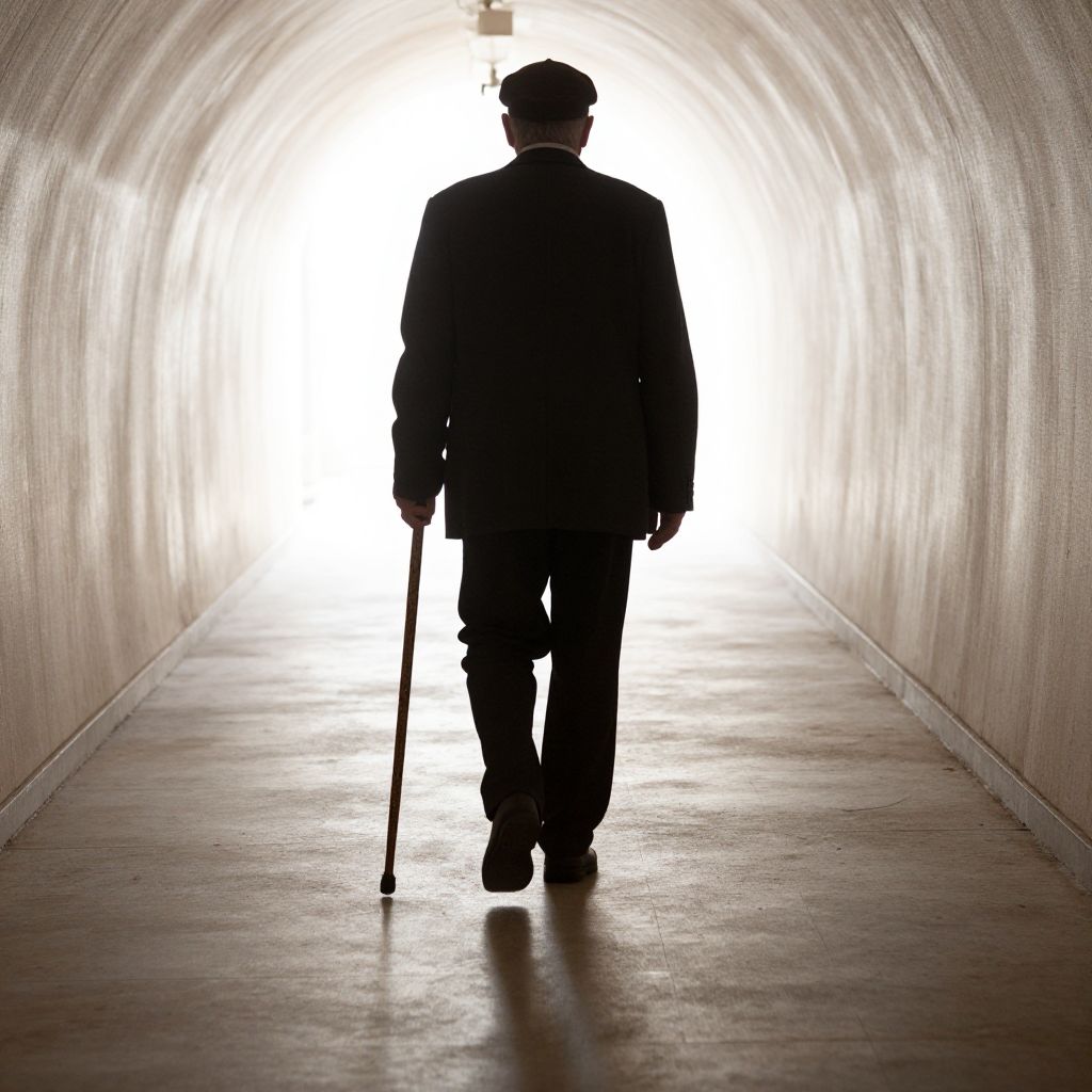 Man with Cane Entering Light Tunnel