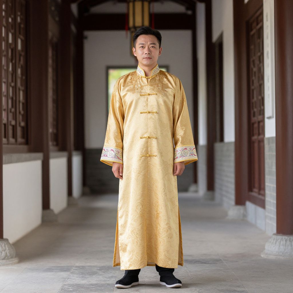 National Costume Around World, man in a traditional chinese costume standing in a hallway