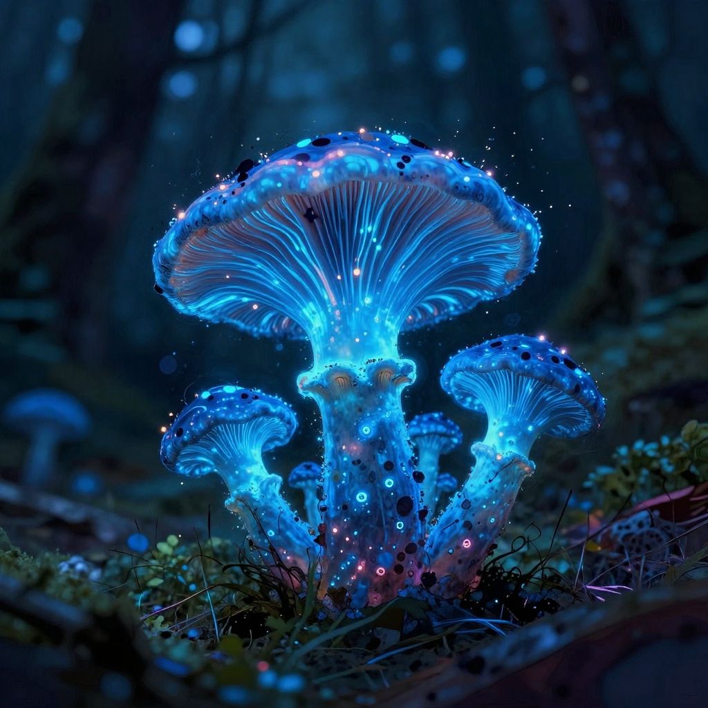Bioluminescent Blue Fungus Illustration