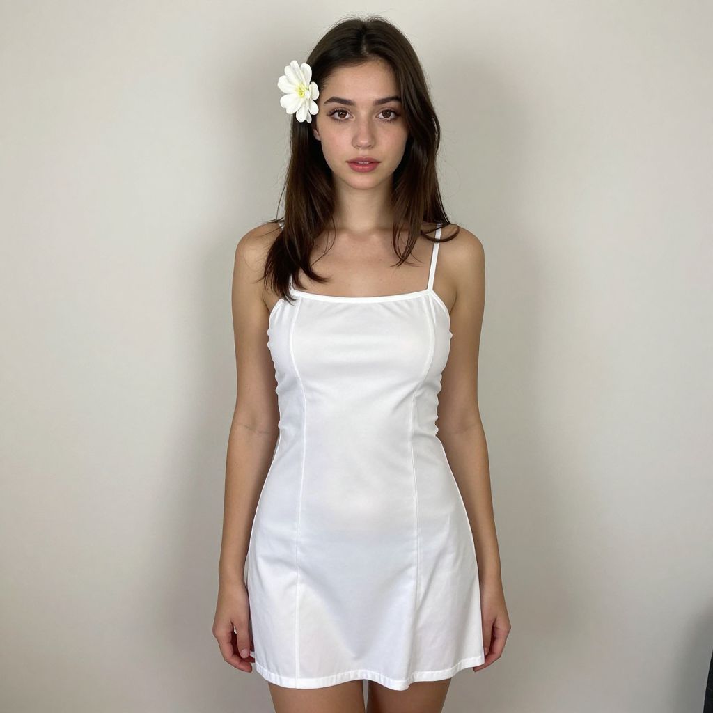 Realistic Woman in White Mini Frock