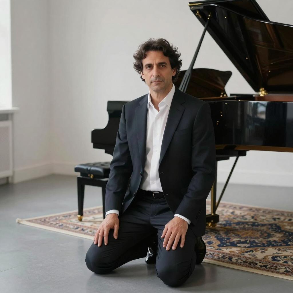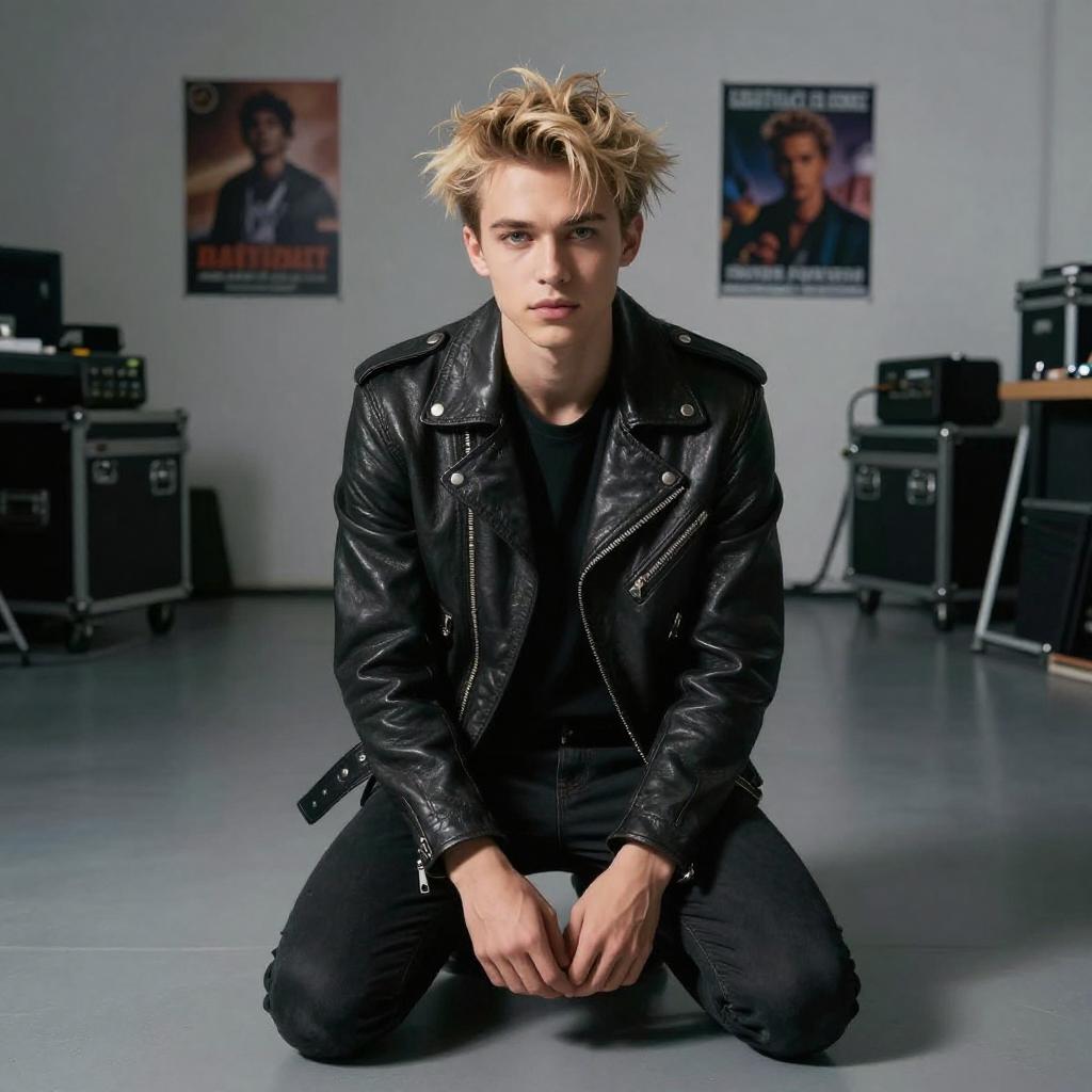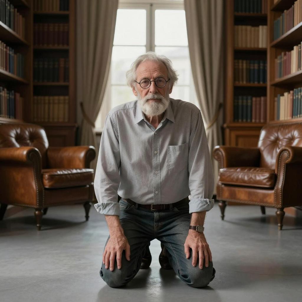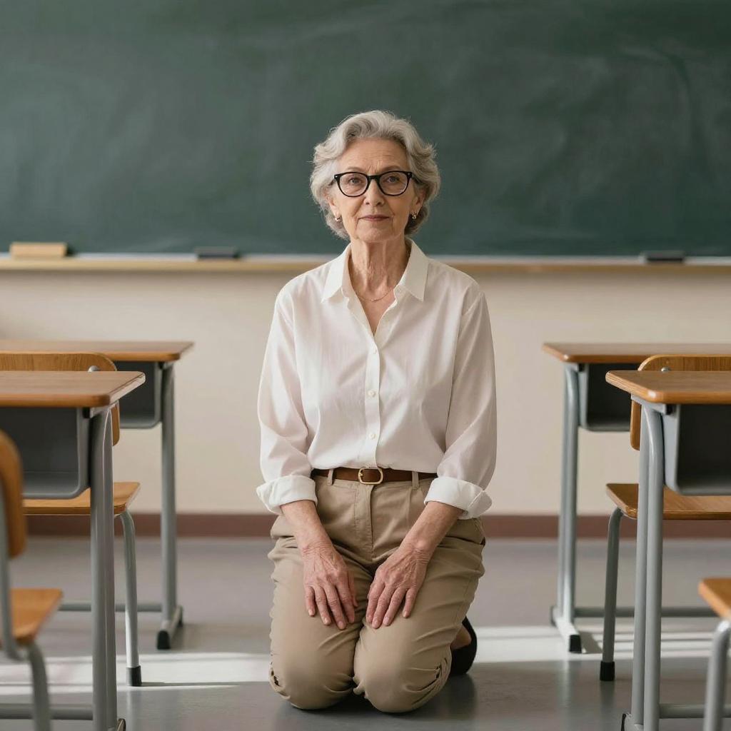 Photorealistic editorial portrait of a young female yoga instructor with braided hair and athleisure wear kneeling on a gray floor in a bright sunlit yoga studio with wooden panels and large windows. Direct confident gaze at the lens, soft natural morning light filtering through blinds sculpting facial features and gentle highlights. Clean minimal interior, subtle glass reflections, balanced composition, shallow depth of field, refined color grading, natural skin texture, crisp details, contemporary mood, high-resolution, professional styling, elegantly posed, negative space preserved, symmetrical lines, polished yet realistic finish.