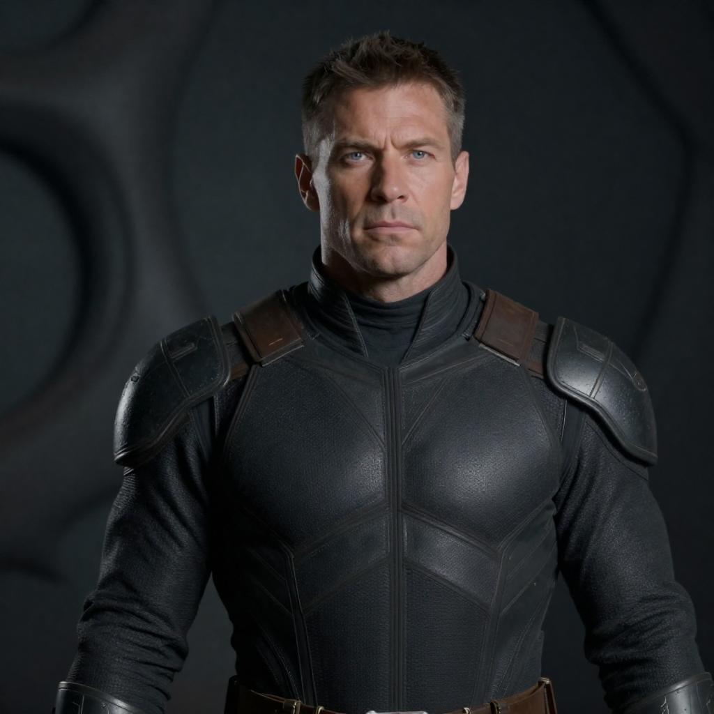Cinematic real life photo, intricate angle, a semi-cyborg man Igor FiL 36 yo, smirk, looking at viewer, star wars warfare scenes, cinestill 50d, 35mm photograph, film, professional, 8k, highly detailed, cyber