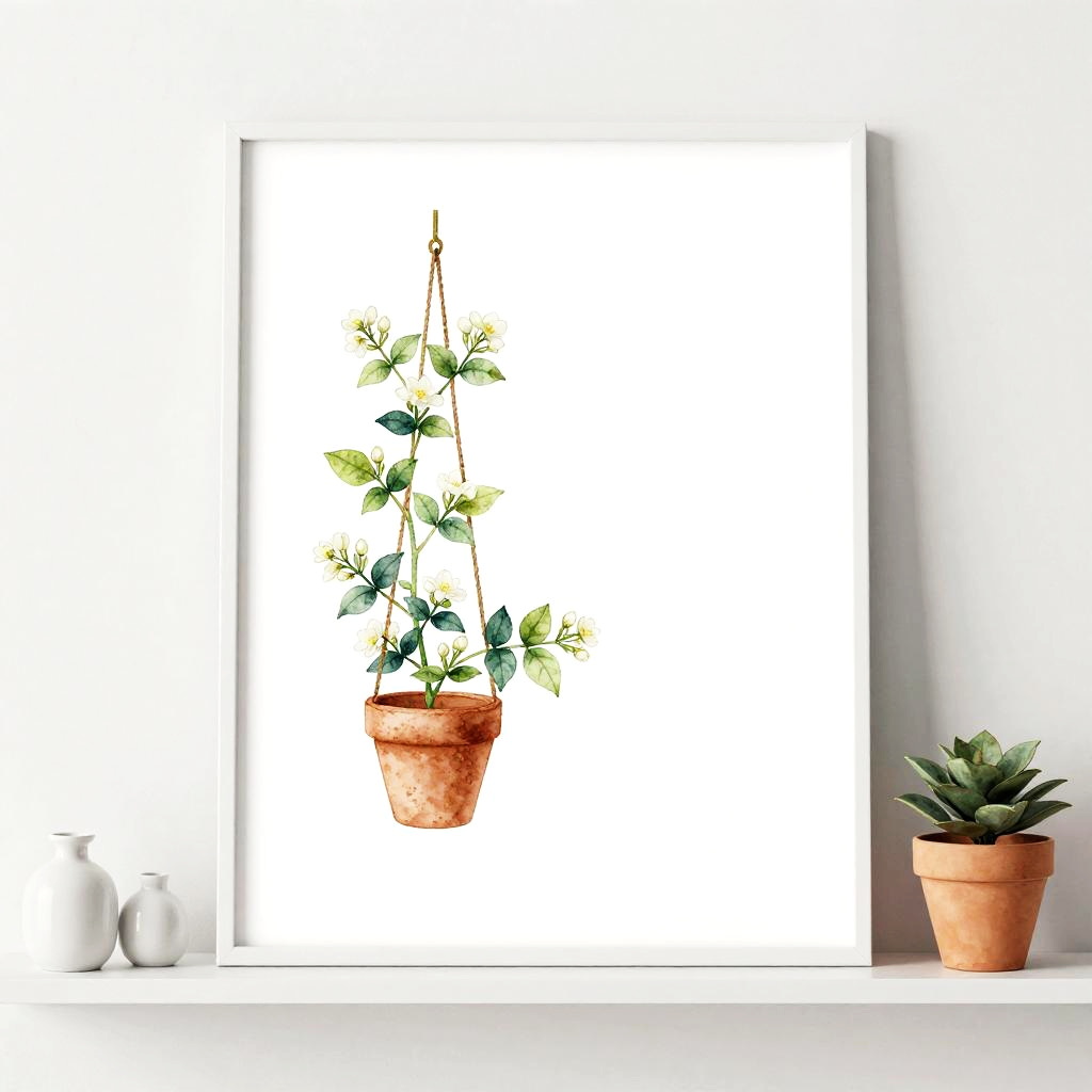 Minimalist Tropical Plant Sketches on Floating Shelf