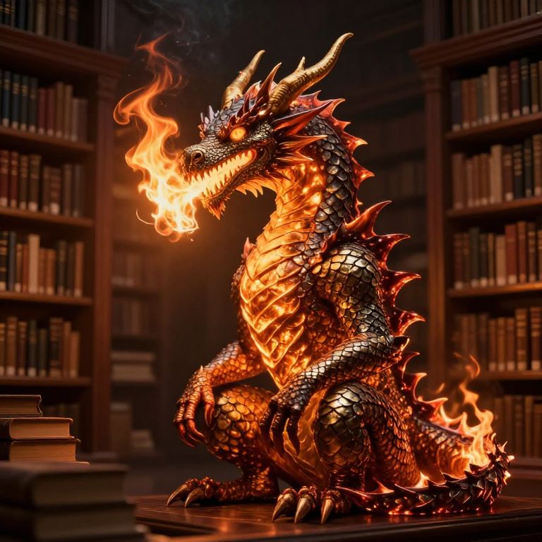 Dragon of Knowledge in Fiery Library