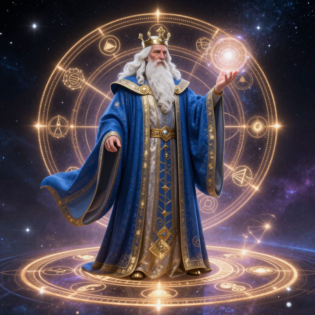 Old dwarf dnd king seated on a grand throne carved from stone and gems, majestic beard flowing, elaborate crown, regal robes with gold embroidery, epic fantasy portrait, dramatic shadows