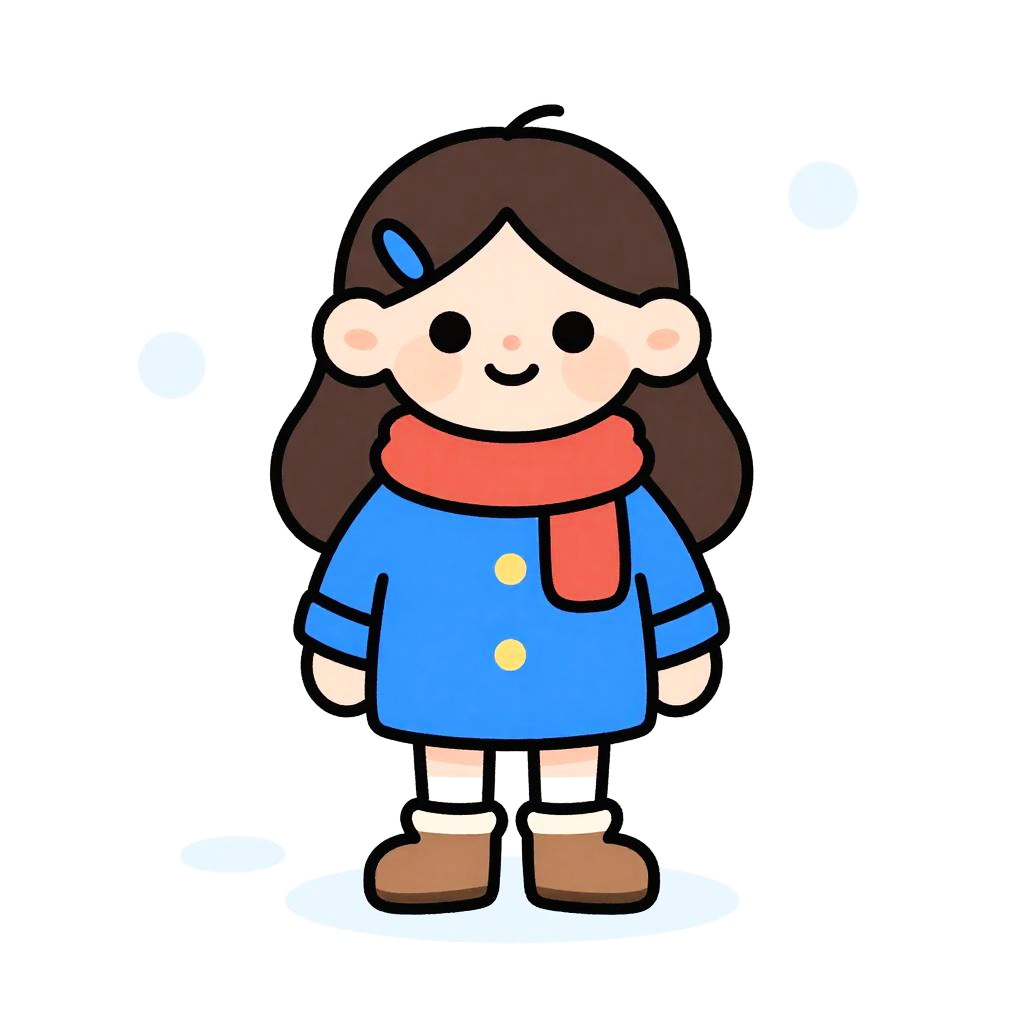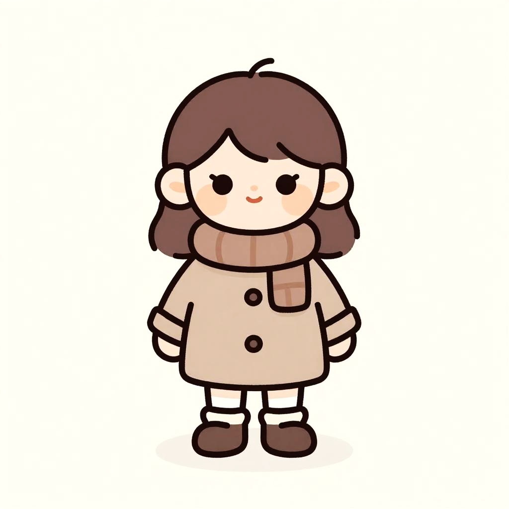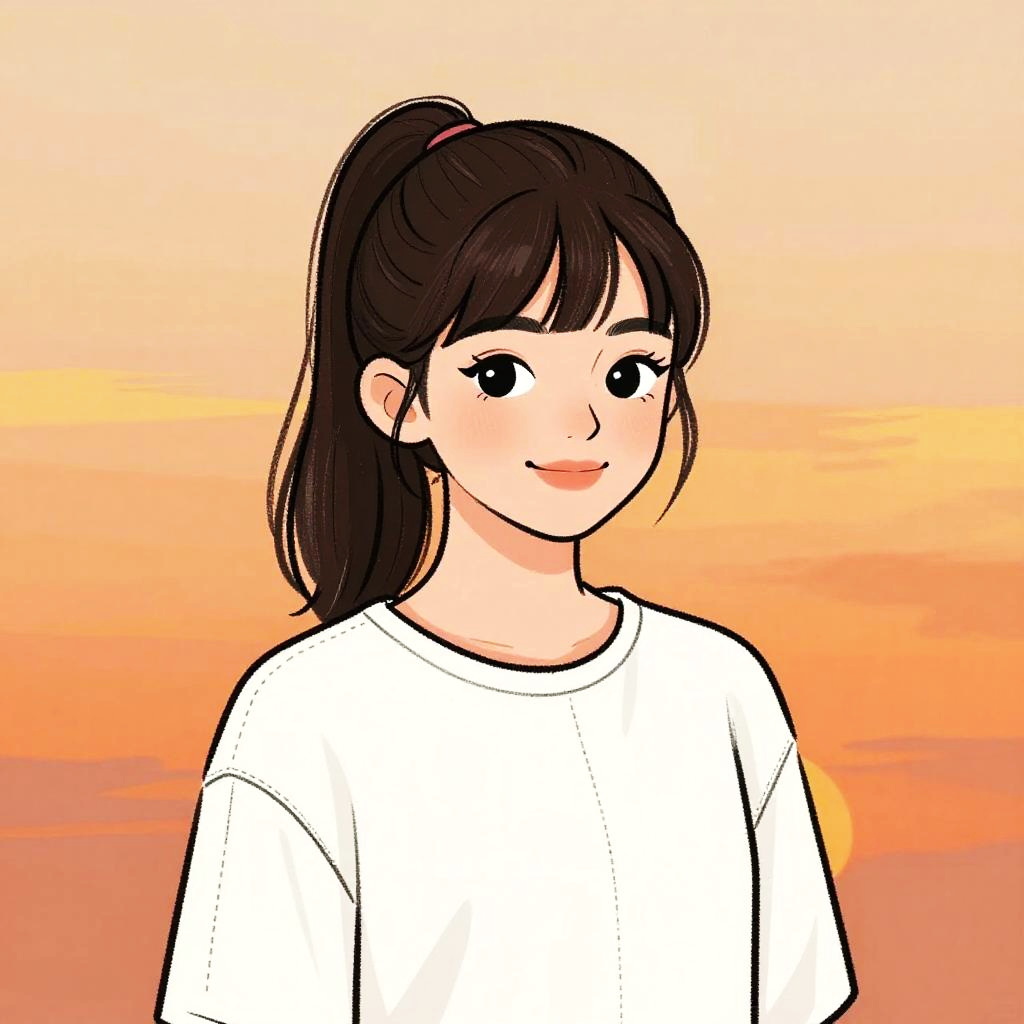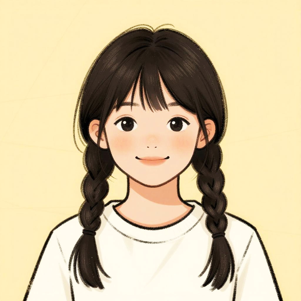 Vector art graphic of playful chibi character with braided chestnut hair, lively grey eyes, wide smile, wearing an orange jacket over a white shirt with green stripes, set against crisp mint backdrop with fine coral stripes and scattered silver stars; playful retro vibe, clean centered composition, bold silhouette, flat colors with subtle halftone/dithering or paper texture as appropriate, gentle glow, cozy mood, crisp edges, high detail, soft grain, award-winning illustration style.