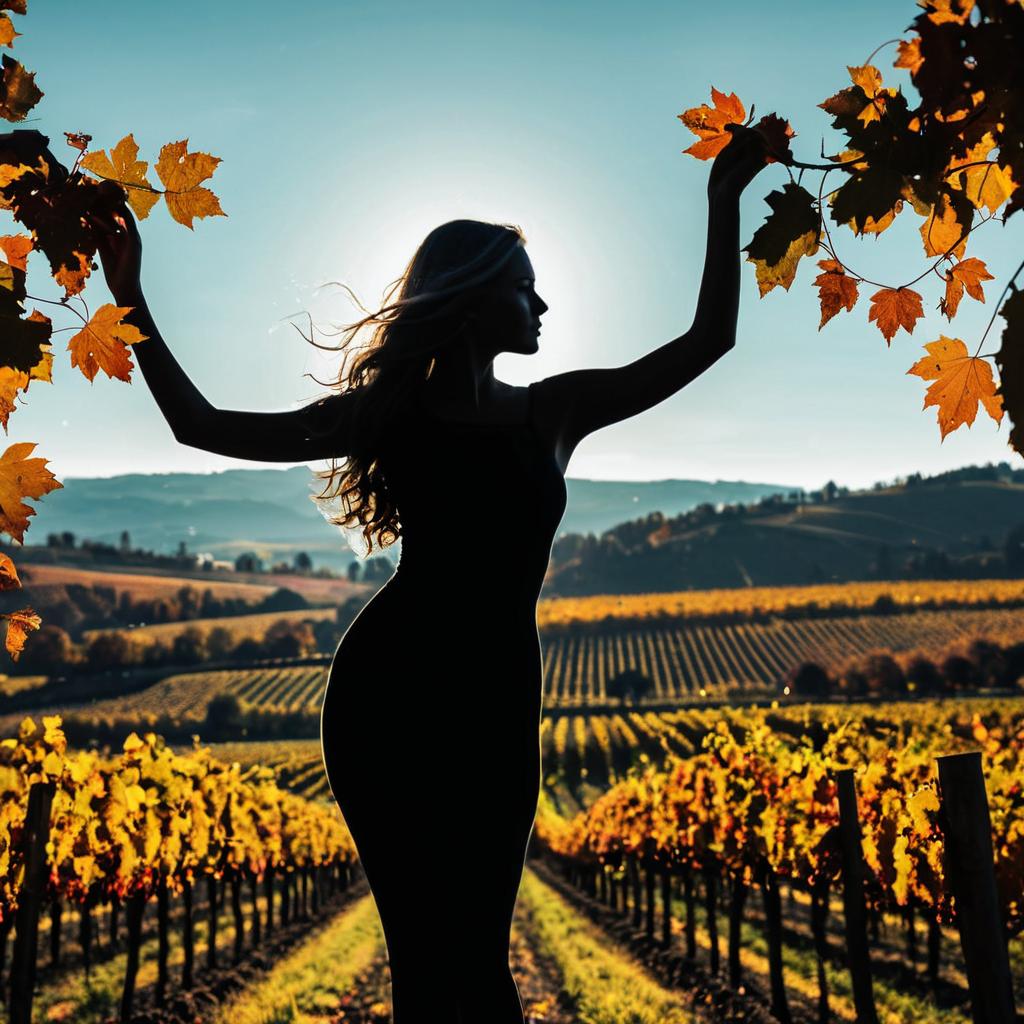 Fluorescent horizon, CG graphics, high quality, 8K Ultra HD, double exposure of a seraph silhouette with an autumn field as the backdrop, crisp lines, sharp focus