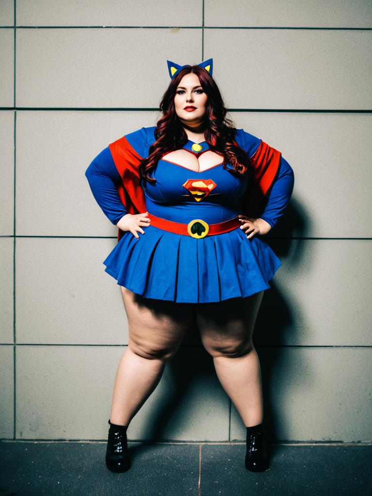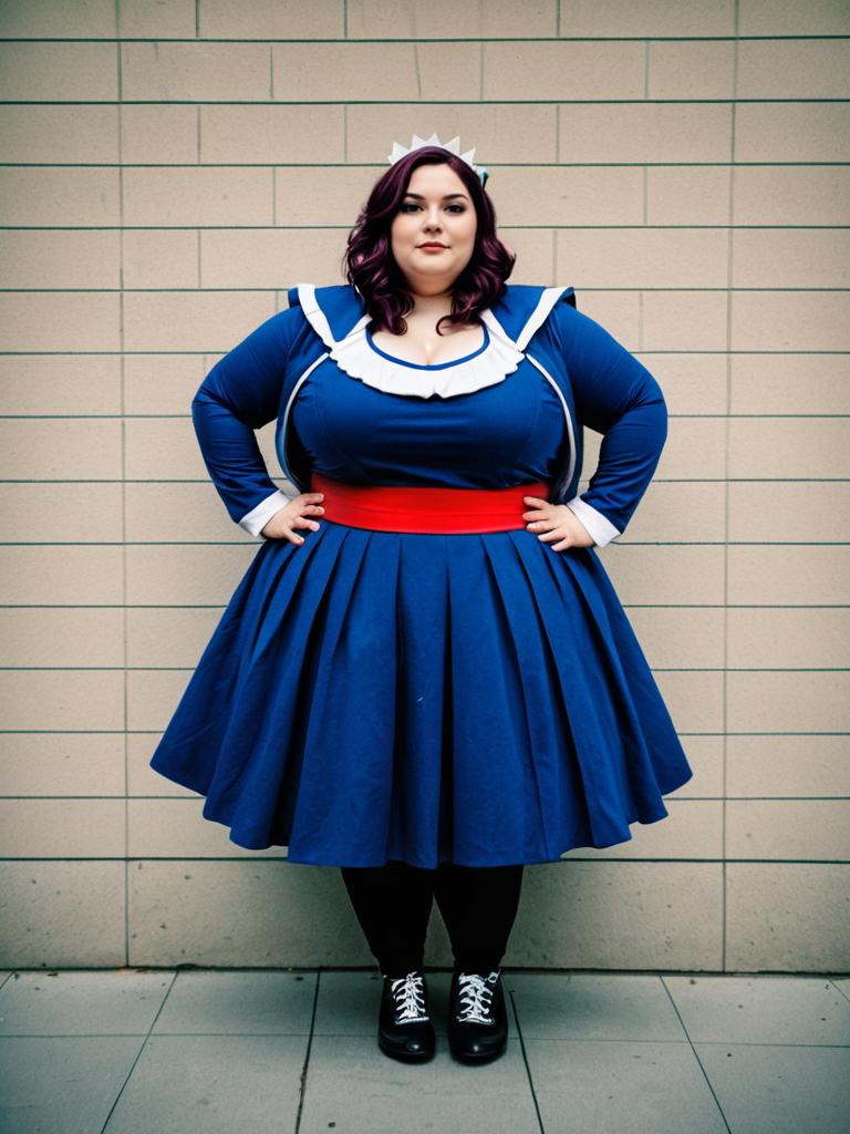 Woman in Plus Size costume, full-body cosplay photo, photorealistic style